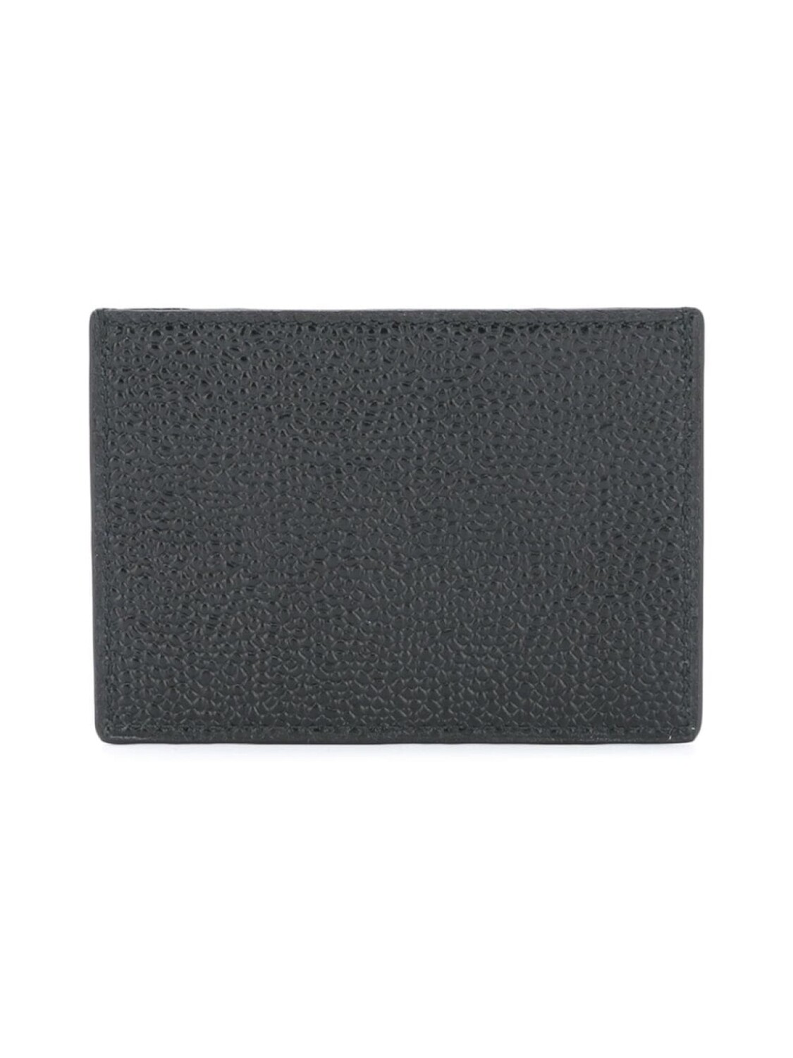 Черная кожаная классическая визитница от Thom Browne. Золотистый логотип, несколько отделений для карточек.