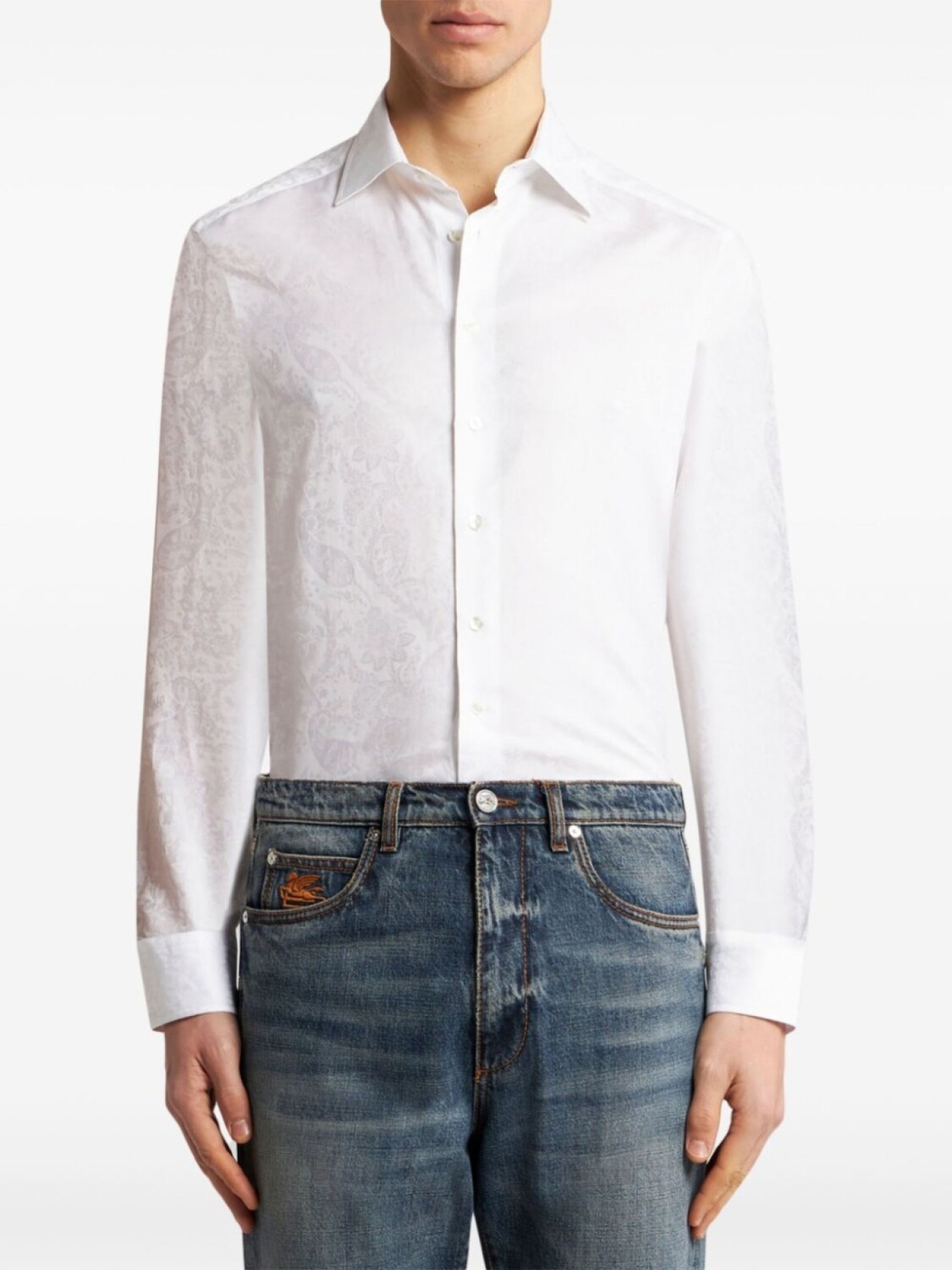 ETRO хлопковая рубашка с узором пейсли, белый