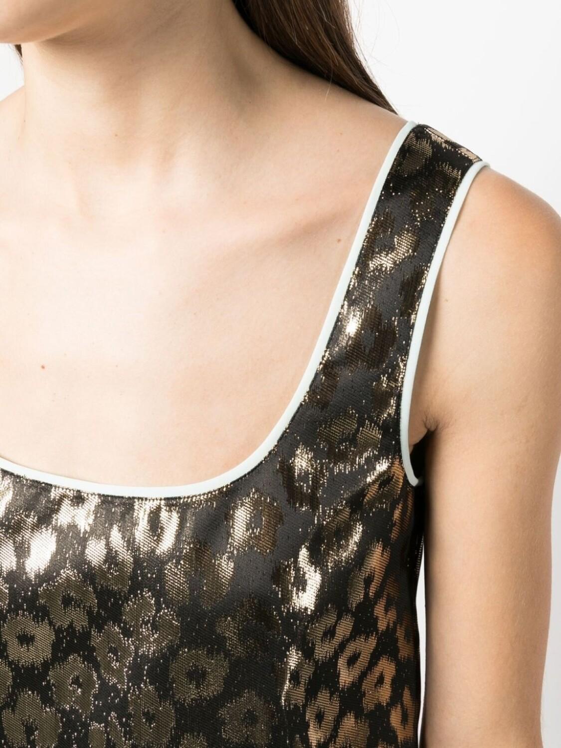 Черный, смесовый шелк, сплошной леопардовый принт, U-образный вырез и без рукавов.