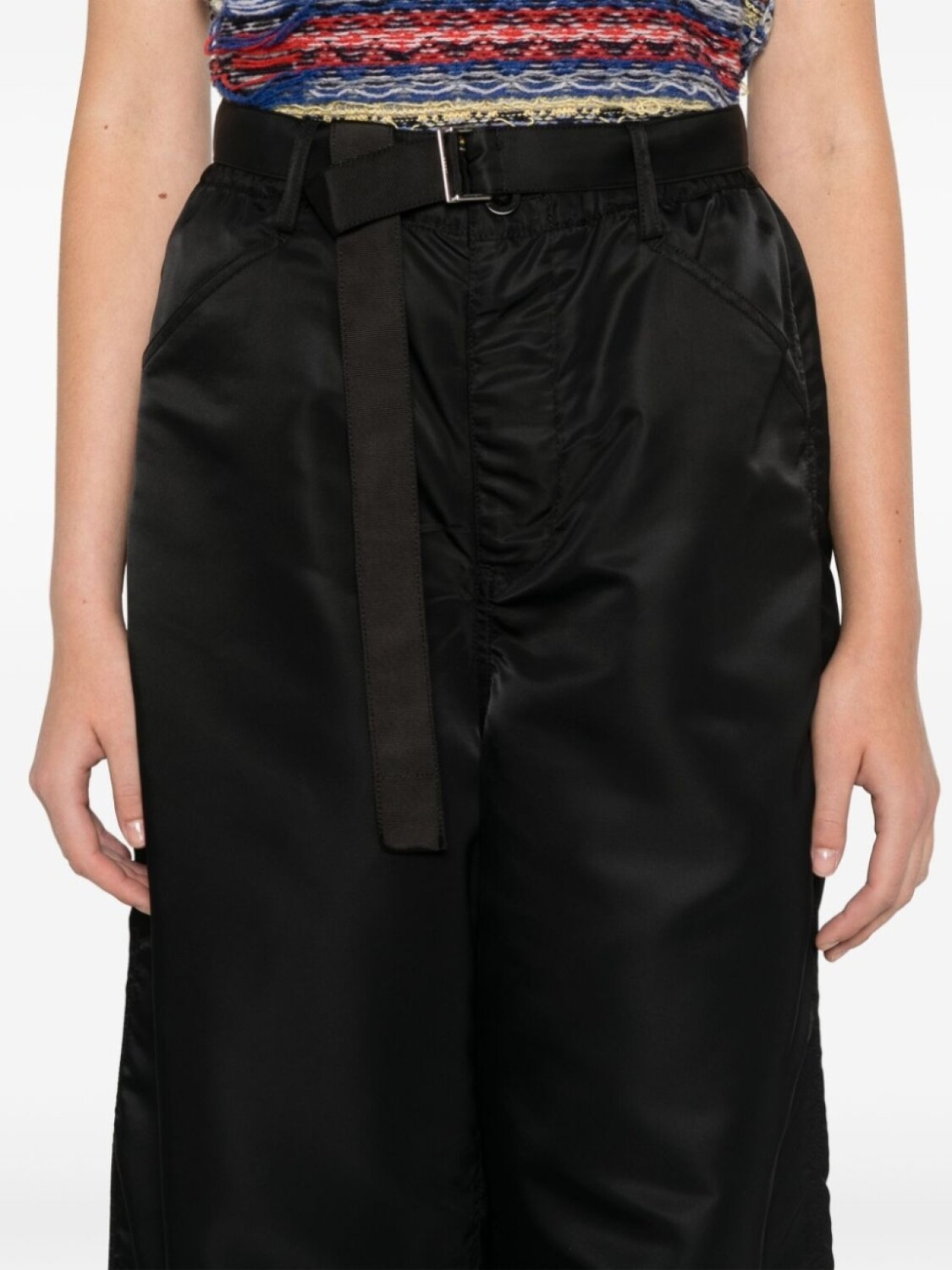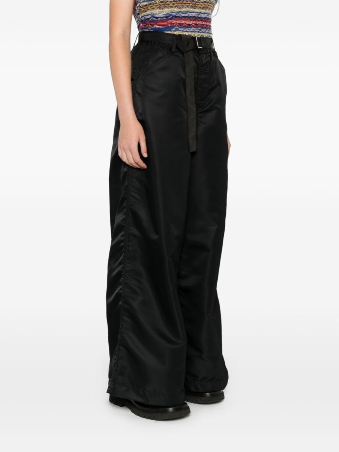 Sacai брюки широкого кроя с поясом, черный