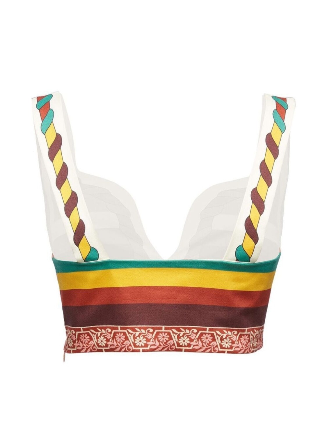 Белый/разноцветный, хлопок, принт в стиле колор-блок, глубокий V-образный вырез, широкие бретели, потайная застежка на молнии сбоку, контрастная отделка, укороченная длина и прямой подол.