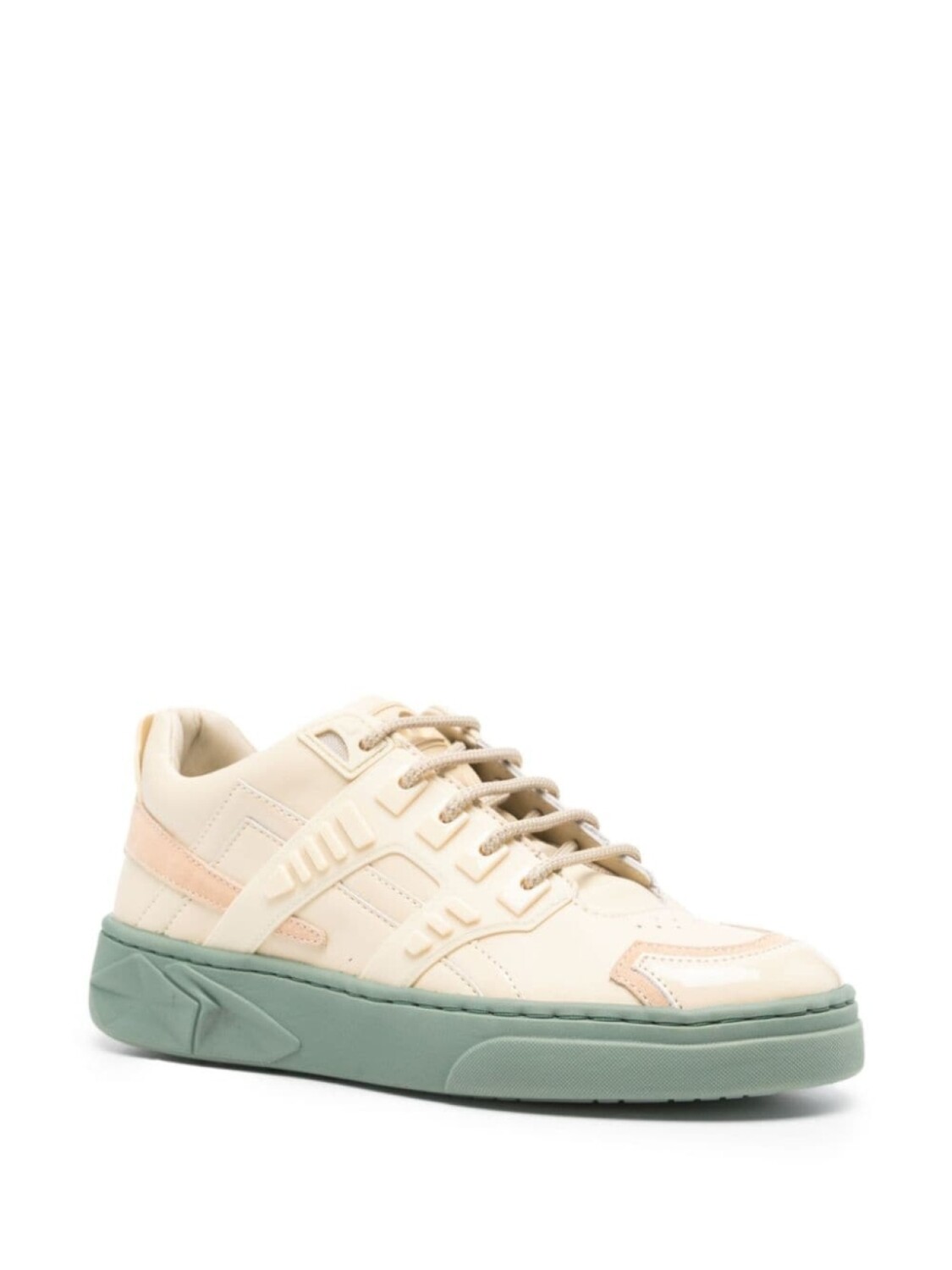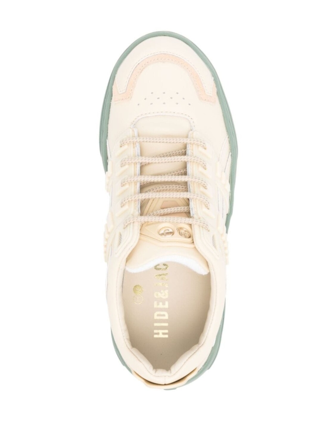 Бежевый/зеленый, телячья кожа, дизайн со вставками, закругленный носок, перфорированный носок, серебристый логотип на язычке, логотип на заднике, кожаная стелька с логотипом, резиновая подошва, шнуровка спереди, Это унисекс-модель. Обратите внимание, что для нее используется мужская размерная сетка., Мы сотрудничали с Good On You — независимым агентством, которое оценивает эффективность брендов с точки зрения их влияния на планету, людей и животных. Рейтинг по многим критериям был упрощен до пяти баллов. Чтобы попасть в категорию ответственных, крупным брендам нужно получить как минимум 4 балла из 5 («Хорошо»), а небольшим маркам — как минимум 3 из 5 («Достойное начало»)., Это товар из коллекции бренда, который появился на FARFETCH, получив оценку 3 из 5 («Достойное начало») от Good on You. Обратите внимание, что этот рейтинг — собственная оценка бренда и это не гарантирует, что данный продукт изготовлен из экологически чистых материалов., Узнать больше о том, какие товары получают отметку «Ответственный выбор», можно здесь.