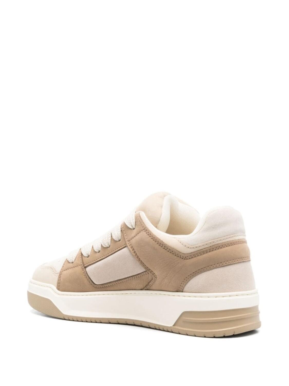 Светло-бежевая/коричневая телячья кожа, замша, шнуровка спереди, вставной дизайн, язычок с логотипом, тисненый логотип сбоку, перфорированный носок, круглый носок, фирменная стелька, толстая резиновая подошва