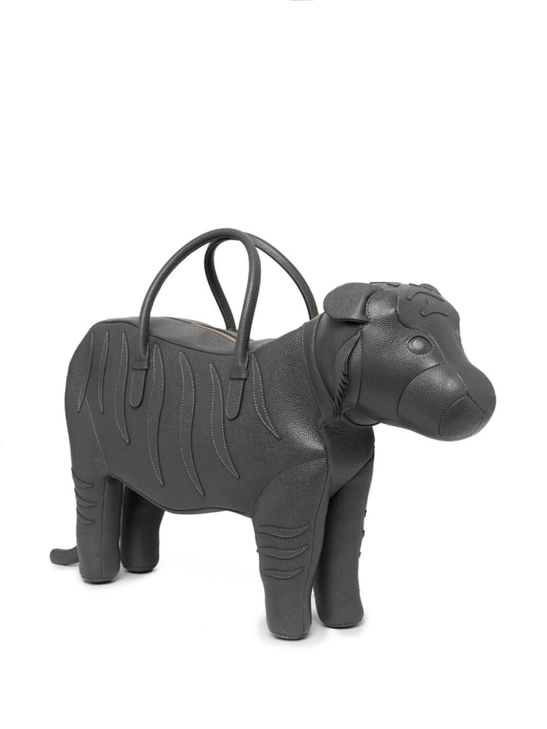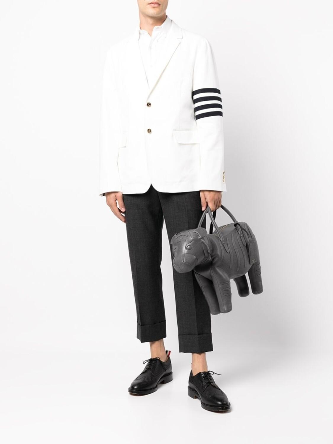 Знаковый декор в виде триколора, зернистая текстура, прозрачный слот для карточки, застежка на молнии сверху, внутренние накладные карманы, внутренняя вставка с логотипом, подкладка в полоску RWB и золотистая фурнитура.