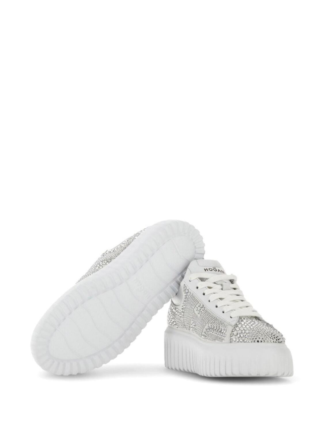 Hogan кроссовки H-Stripe со стразами, серебристый