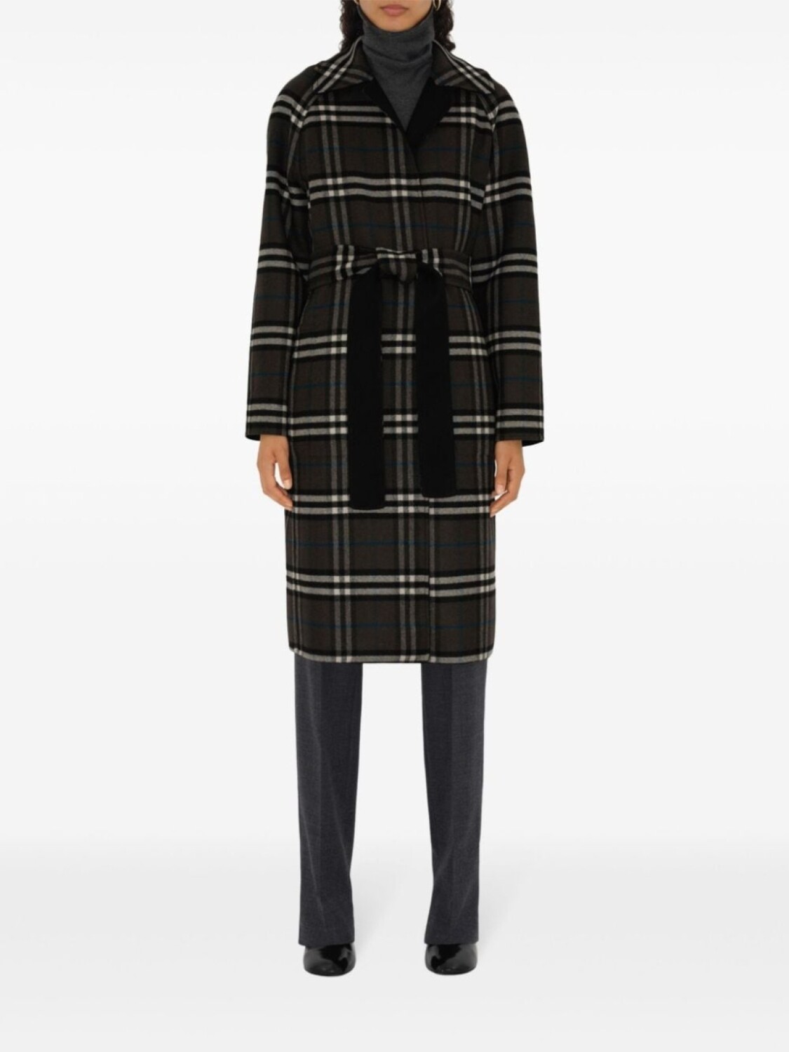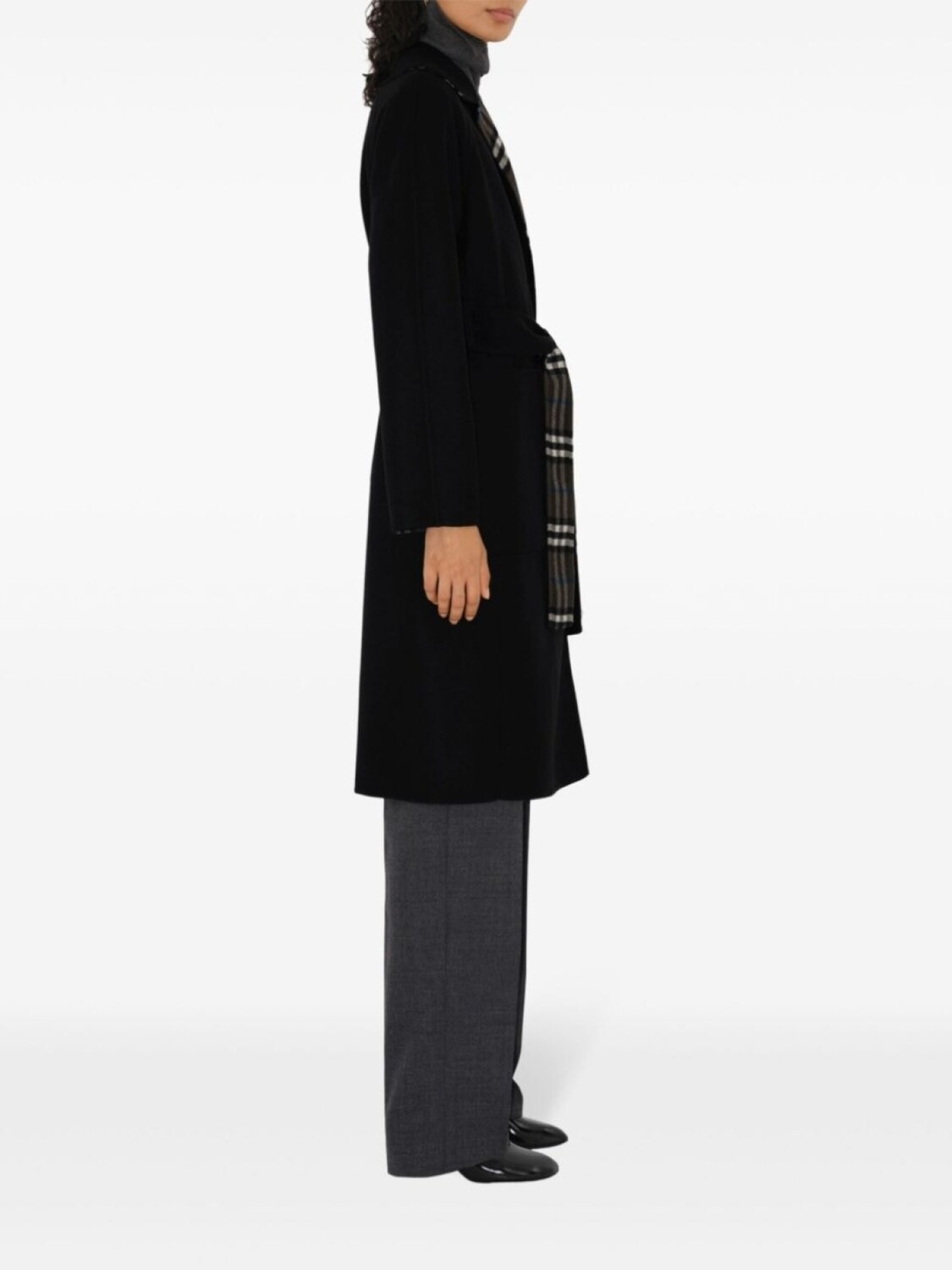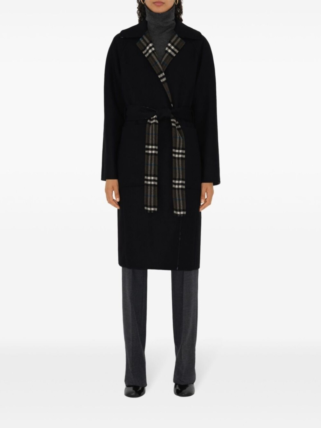 Burberry двустороннее пальто-халат из шерсти в клетку, черный
