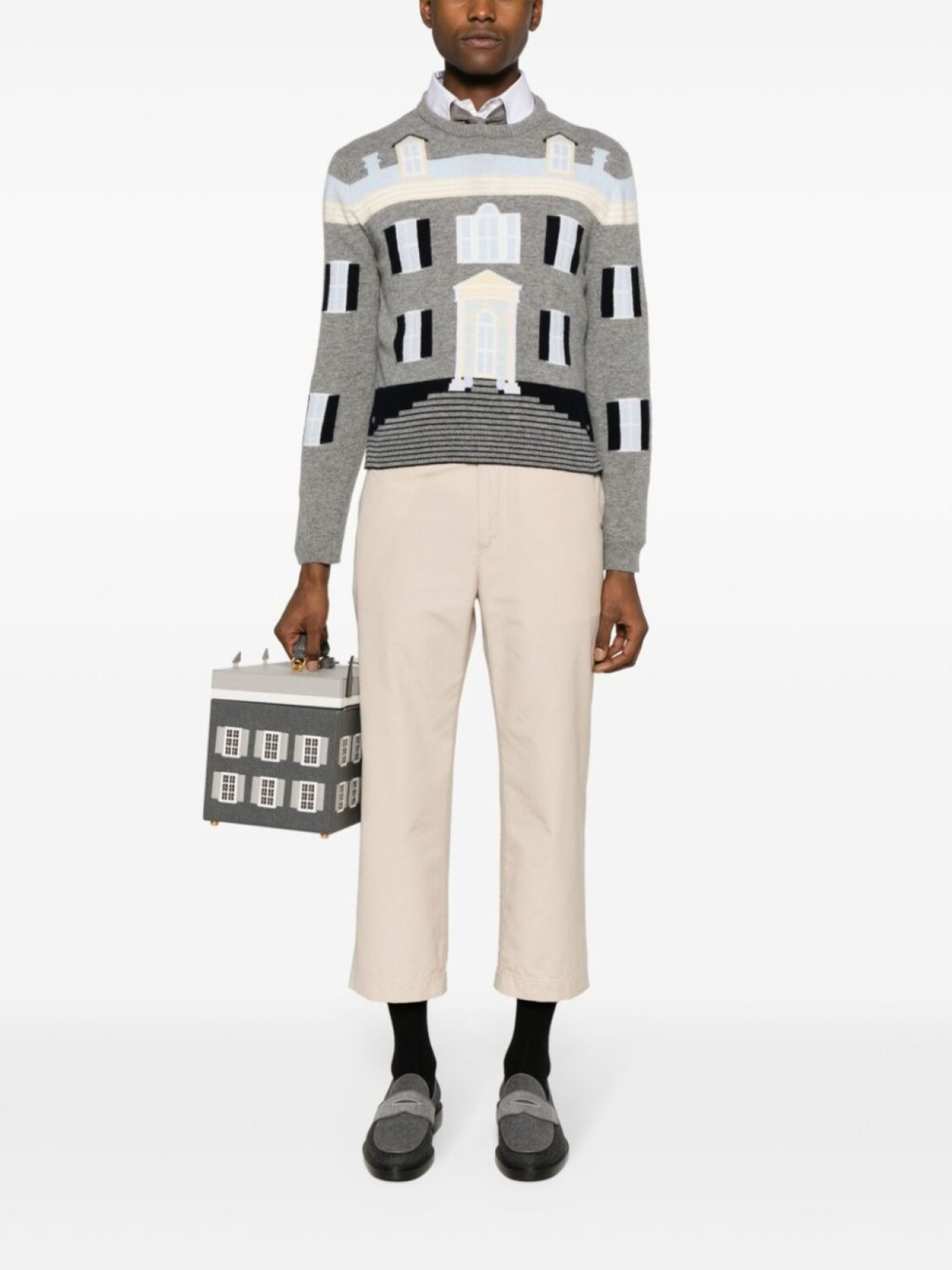 Thom Browne шерстяной джемпер House вязки интарсия, серый 106 424₽