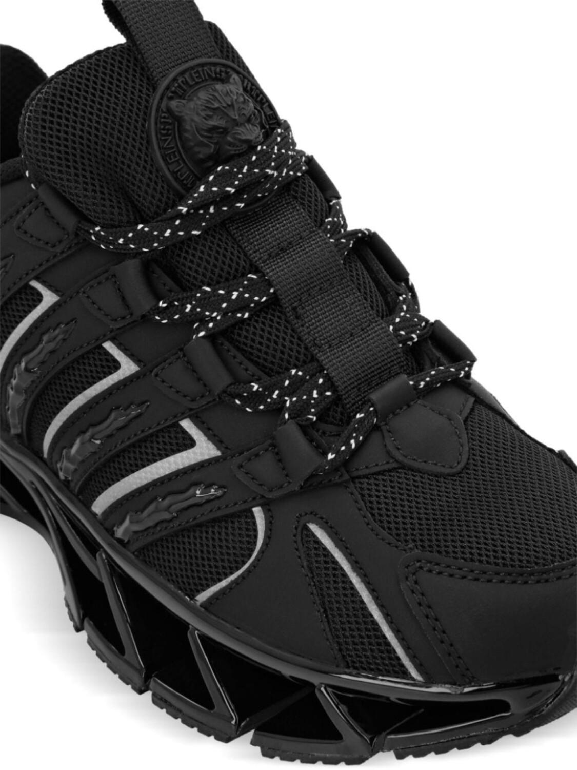 Черный панельный дизайн, сетчатые панели, шнуровка спереди, язычок на пятке, надпись с логотипом, светоотражающие детали, нашивка с логотипом на язычке, язычок на язычке, миндалевидный носок, фирменная стелька, толстая резиновая подошва. При покупке этой модели унисекс имейте в виду, что она классифицируется по стандартным мужским размерам.