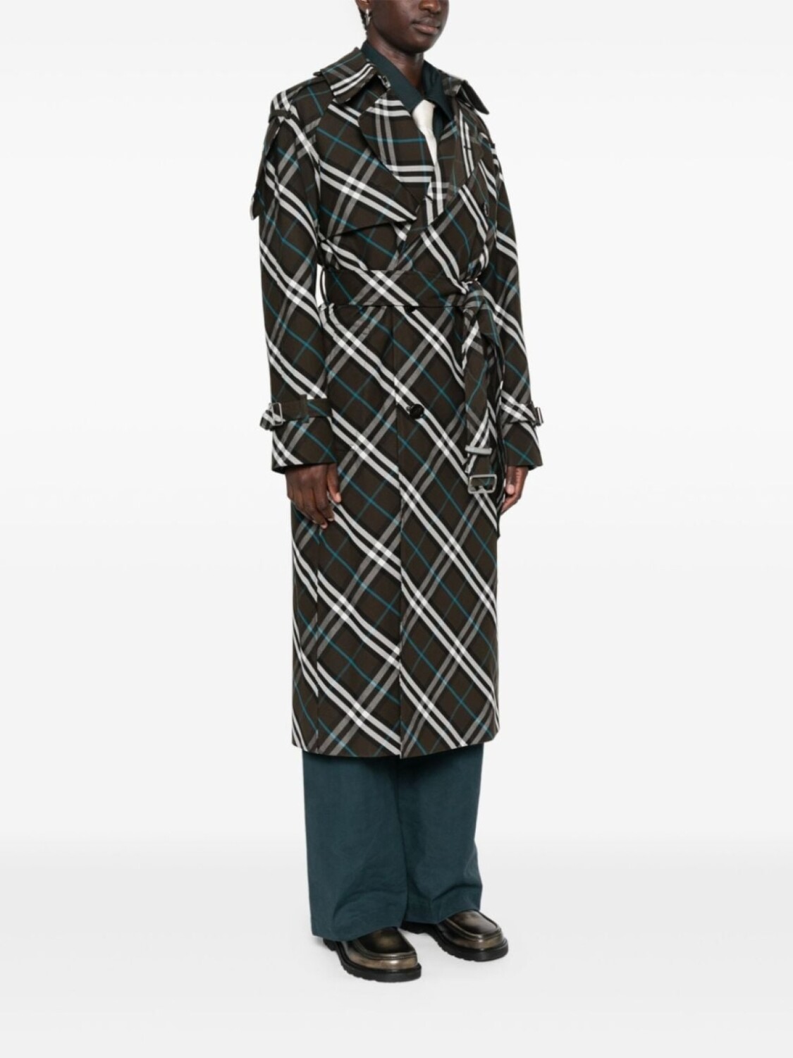 Подробнее о товаре: • оливково-зеленый/разноцветный • ткань с твиловым переплетением • клетчатый узор • отложной воротник • застежка на крючке спереди • смещенная застежка на пуговицах спереди • ружейный клапан • эполеты • длинные рукава реглан • манжеты с ремешками • два прорезных кармана по бокам • съемный пояс • петли для ремня • цельная подкладка • внутренние карманы • шлица по центру сзади • прямой подол • длина макси