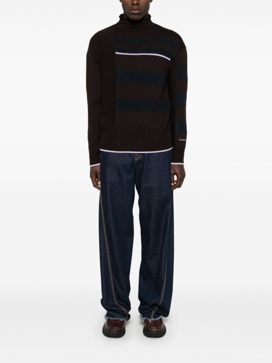 Lanvin джемпер в полоску с высоким воротником, коричневый