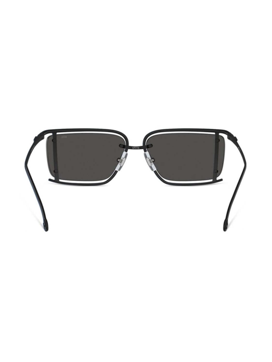 Черный, металл, матовое покрытие, прямоугольная оправа, затемненные линзы, линзы с защитой от ультрафиолета, металлический логотип на дужке, прямые дужки и дужки с закругленными концами. В комплект входит защитный чехол для очков.