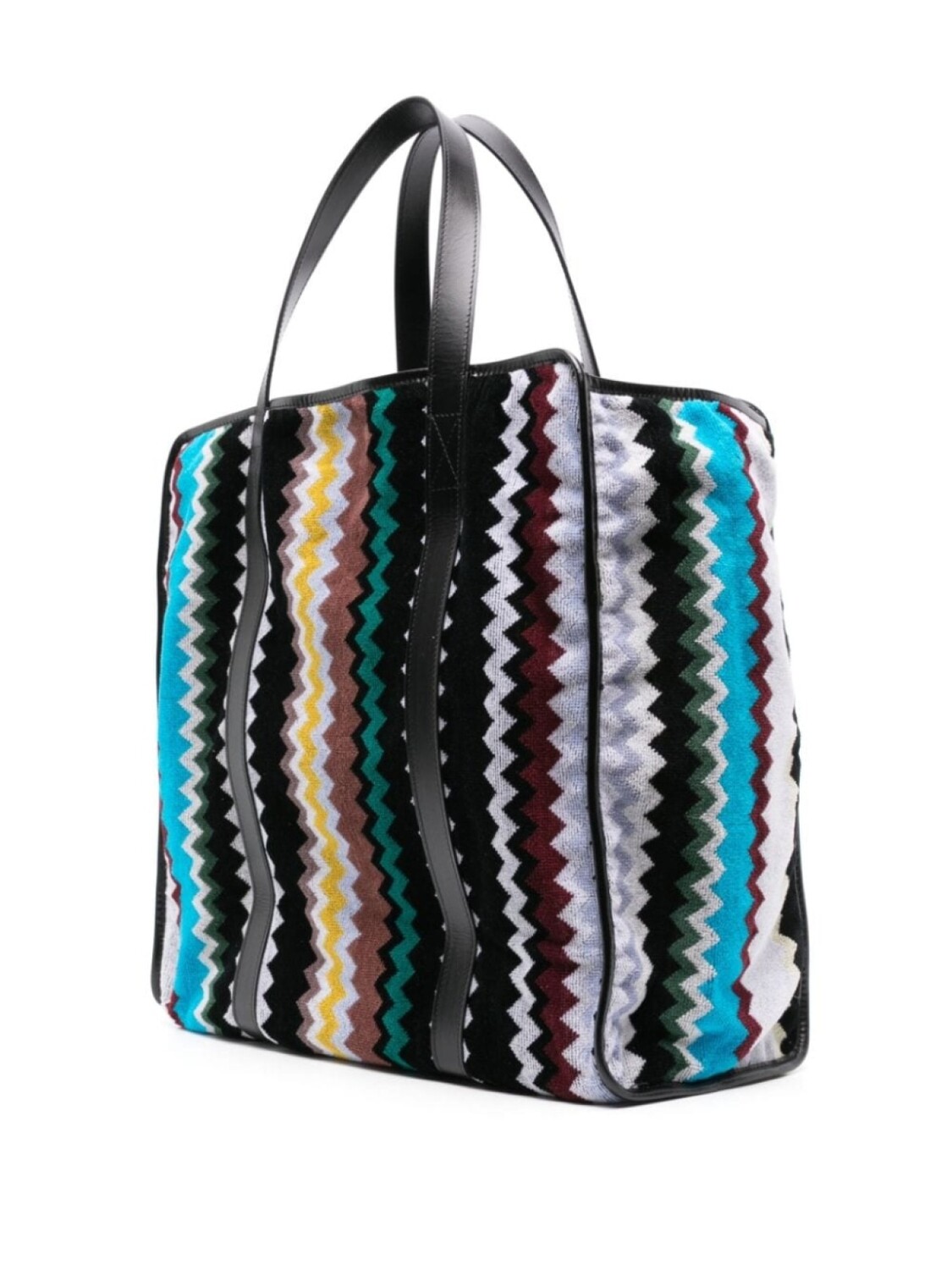 Подробнее о товаре: • черный/разноцветный • хлопок • полотенечная ткань • плетение с узором зигзаг • кожаная отделка • дизайн с открытым верхом • две плоские верхние ручки • основное отделение • два внутренних накладных кармана • внутренняя вставка с логотипом • цельная подкладка • Полученная вами вещь может незначительно отличаться от изображенной на сайте. Эта модель, как и другие вещи Missoni, выполнена вручную, поэтому товар может незначительно отличаться от фотографий на сайте.