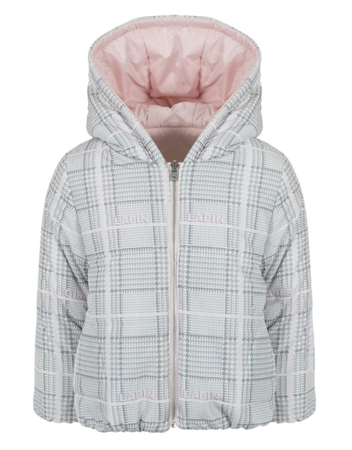 Розовый/серый, клетчатый узор, застежка на молнии, классический капюшон, два передних кармана, логотип спереди, длинные рукава, прямой подол