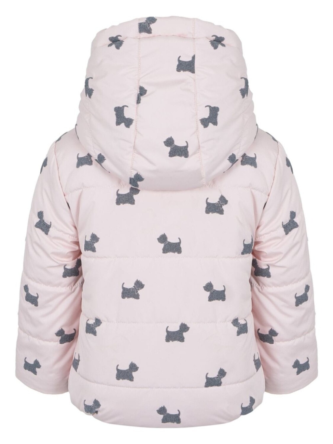 Светло-розовый/пепельно-серый хлопковая подкладка, графический принт по всей поверхности, классический капюшон, застежка-молния спереди, длинные рукава, прямой подол