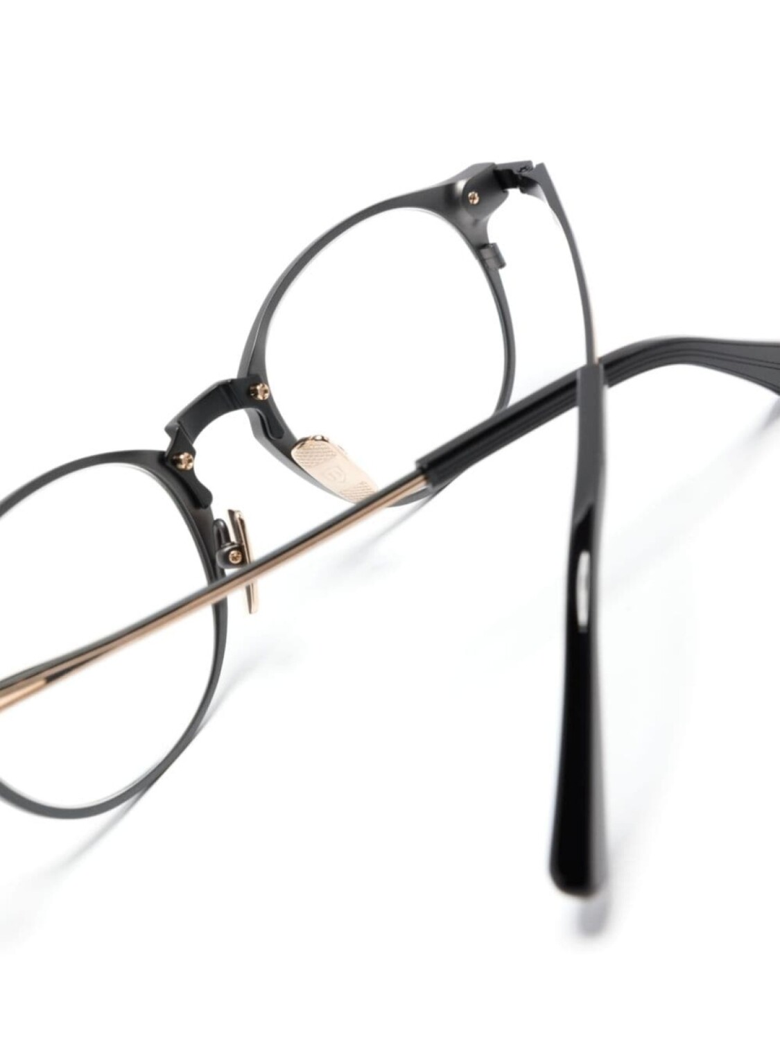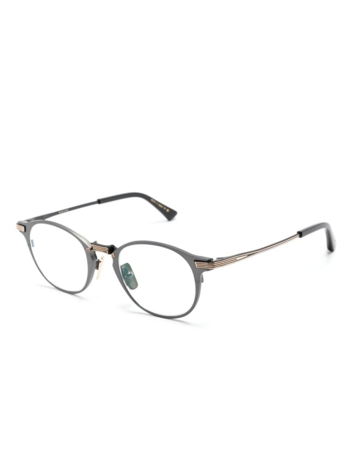 Серый/золотистый, металл, круглая оправа, прозрачные линзы, защитная пленка, металлическая верхняя планка, носоупоры, прямые дужки, дужки с закругленными концами, Обратите внимание, что на FARFETCH продаются оправы с линзами без диоптрий., В комплект входит защитный чехол для очков.