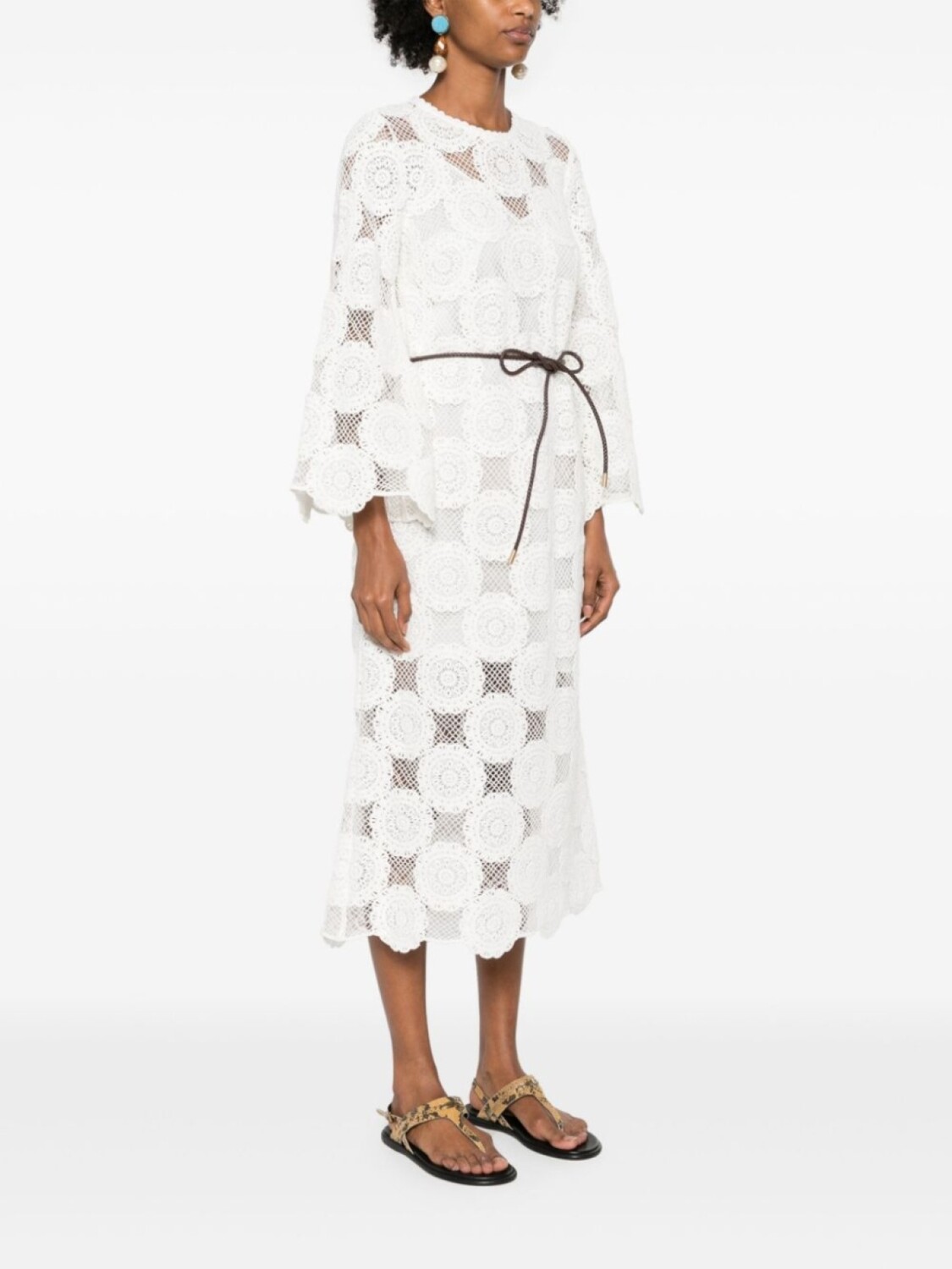 ZIMMERMANN платье миди в технике кроше с поясом, белый