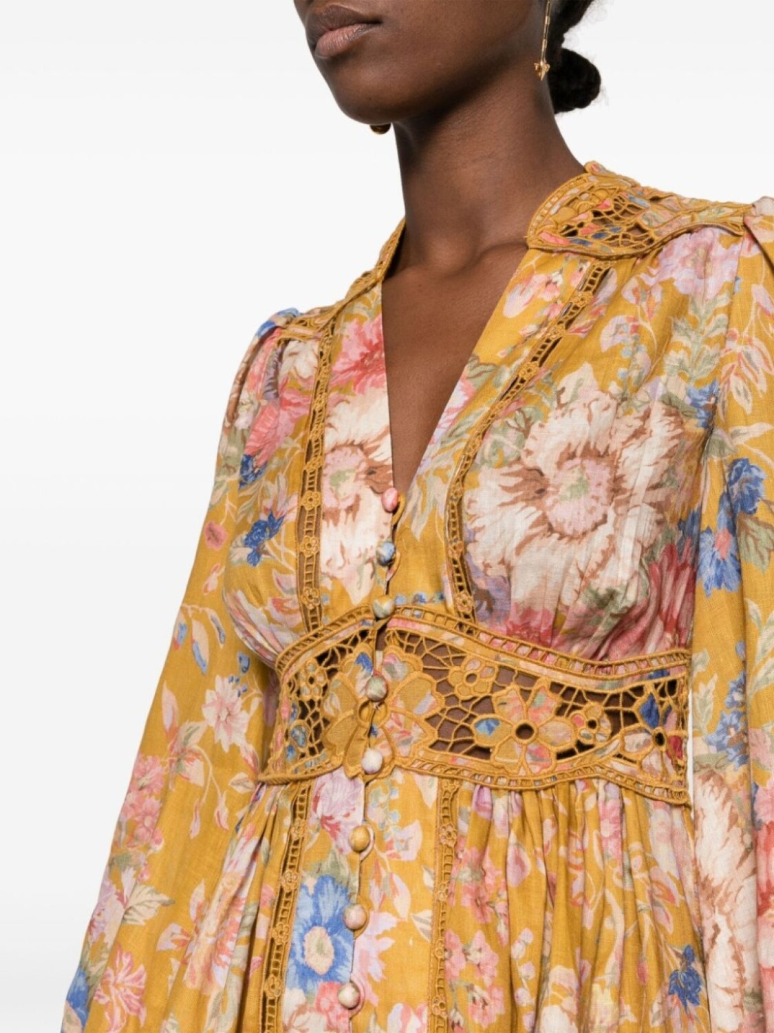 Подробнее о товаре: Лен, кружевные вставки, сплошной цветочный принт, глубокий V-образный вырез, длинные рукава, эластичные манжеты, застежка на молнии сзади и длина до бедер. Этот товар как минимум на 50% состоит из материалов, которые признаны более безопасными для окружающей среды, и/или произведены с использованием методов, которые помогают сократить потребление воды и химических веществ.