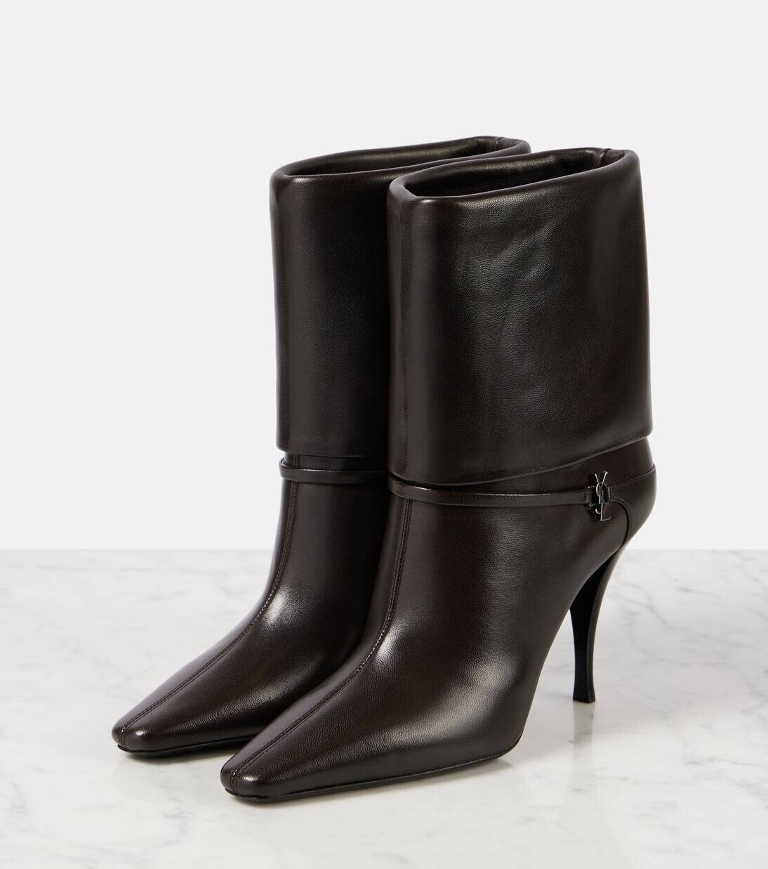 Ботинки кожаные Vicky 90 Saint Laurent, цвет eagle brown (silver) 183 327₽