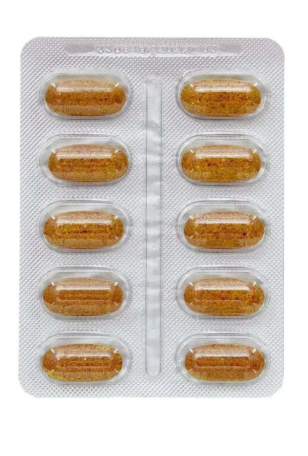 Berberis Aristata ES, титрованный до 85% хлорида берберина (в составе: Berberis Aristata Dc Cortex Arboris ES, прежелатинизированный крахмал, микрокристаллическая целлюлоза), ферментированный красный рис (Monascus Purpureus), титрованный до 1,5% монаколина, противослеживающие агенты: микрокристаллическая целлюлоза , Сшитая карбоксиметилцеллюлоза натрия, диоксид кремния, стеарат магния, тальк, астаксантин, экстрагированный из микроводорослей (Haematococcus Pluvialis Flotow, Thallus), титрованный до 2,5% (в составе: гидролизованный желатин, олеорезин, сахароза, кукурузный крахмал, аскорбилпальмитат, токоферолы, астаксантин). ), экстракт Policosanol Saccharum Officinarum, титрованный до 90%, глазировочные агенты: гидроксипропилцеллюлоза, шеллак, поливинилпирролидон, коэнзим Q10, птероилмоноглутаминовая кислота (фолиевая кислота).