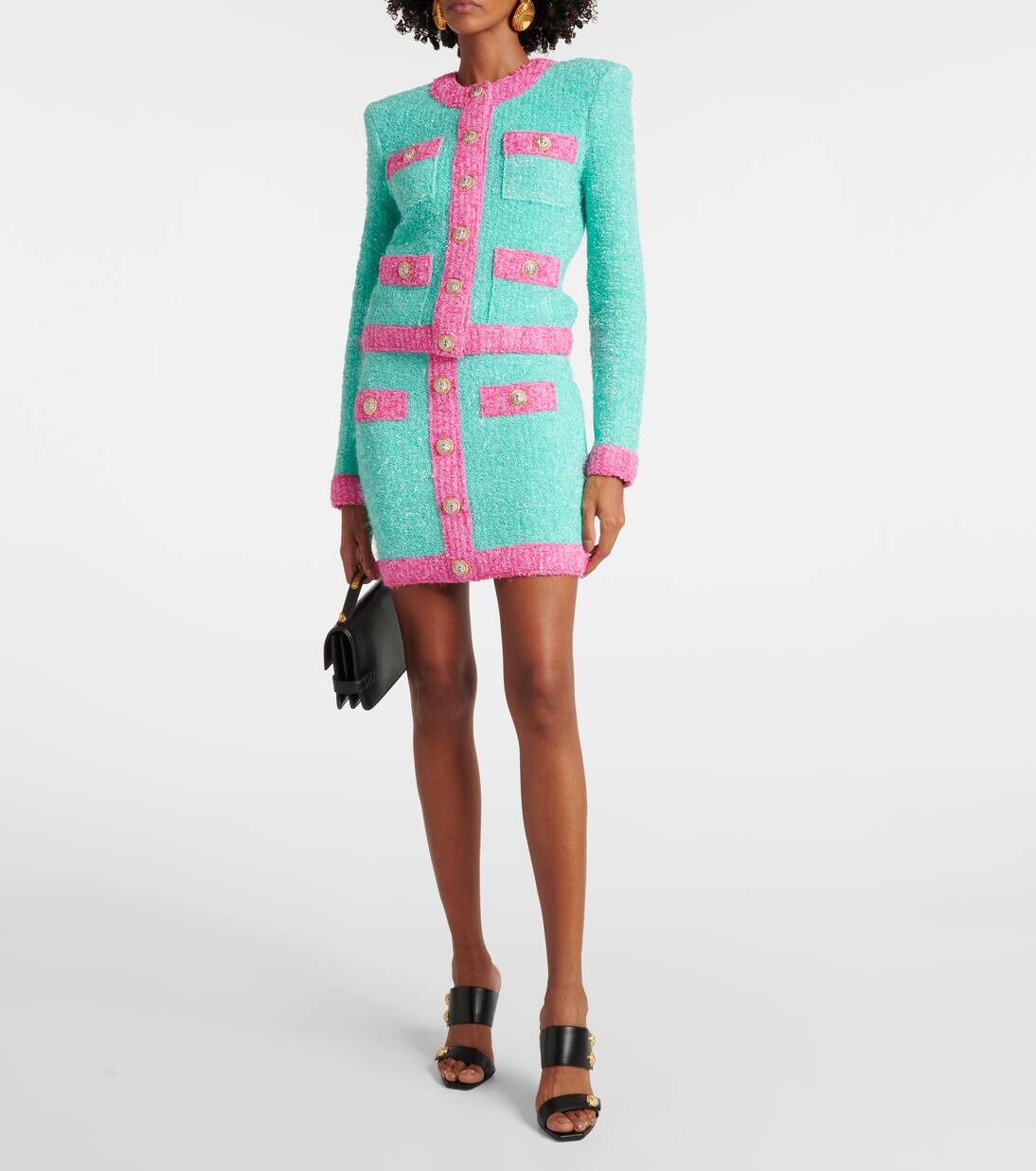 Вязаный блейзер Balmain, цвет menthe/fuchsia