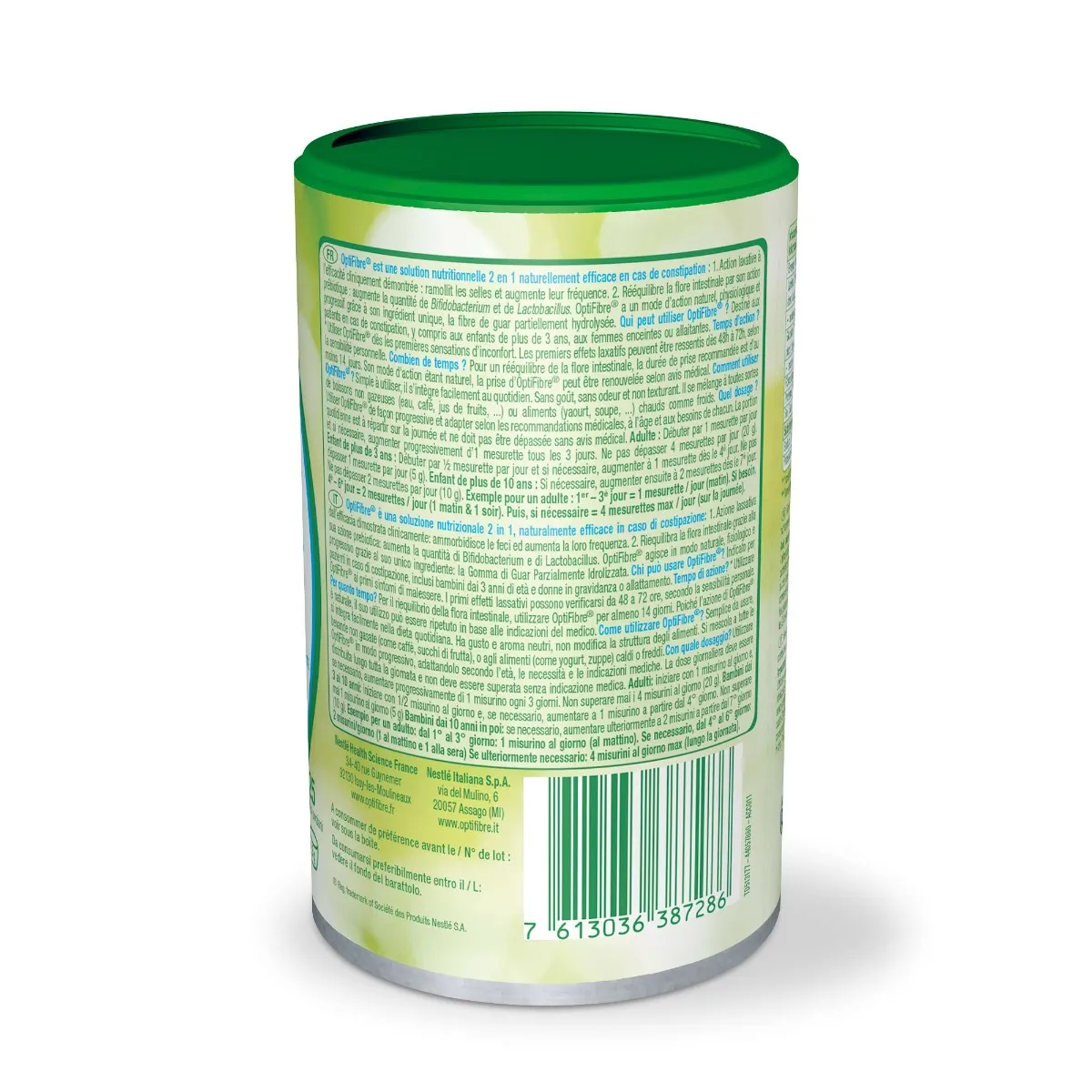 OptiFibre действует естественным, физиологическим и прогрессивным образом благодаря своему единственному ингредиенту, частично гидролизованной гуаровой камедь.
