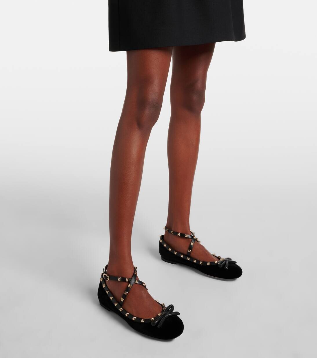 Бархатные балетки Rockstud Valentino Garavani, черный 77 758₽