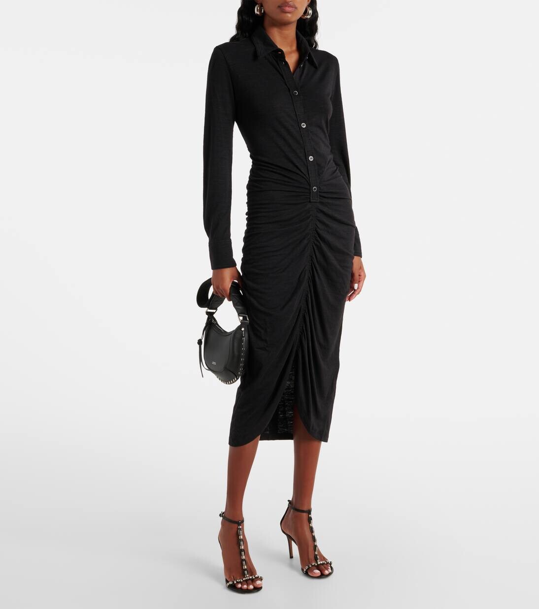 Платье-поло Ivalia из джерси со сборками Marant Etoile, черный