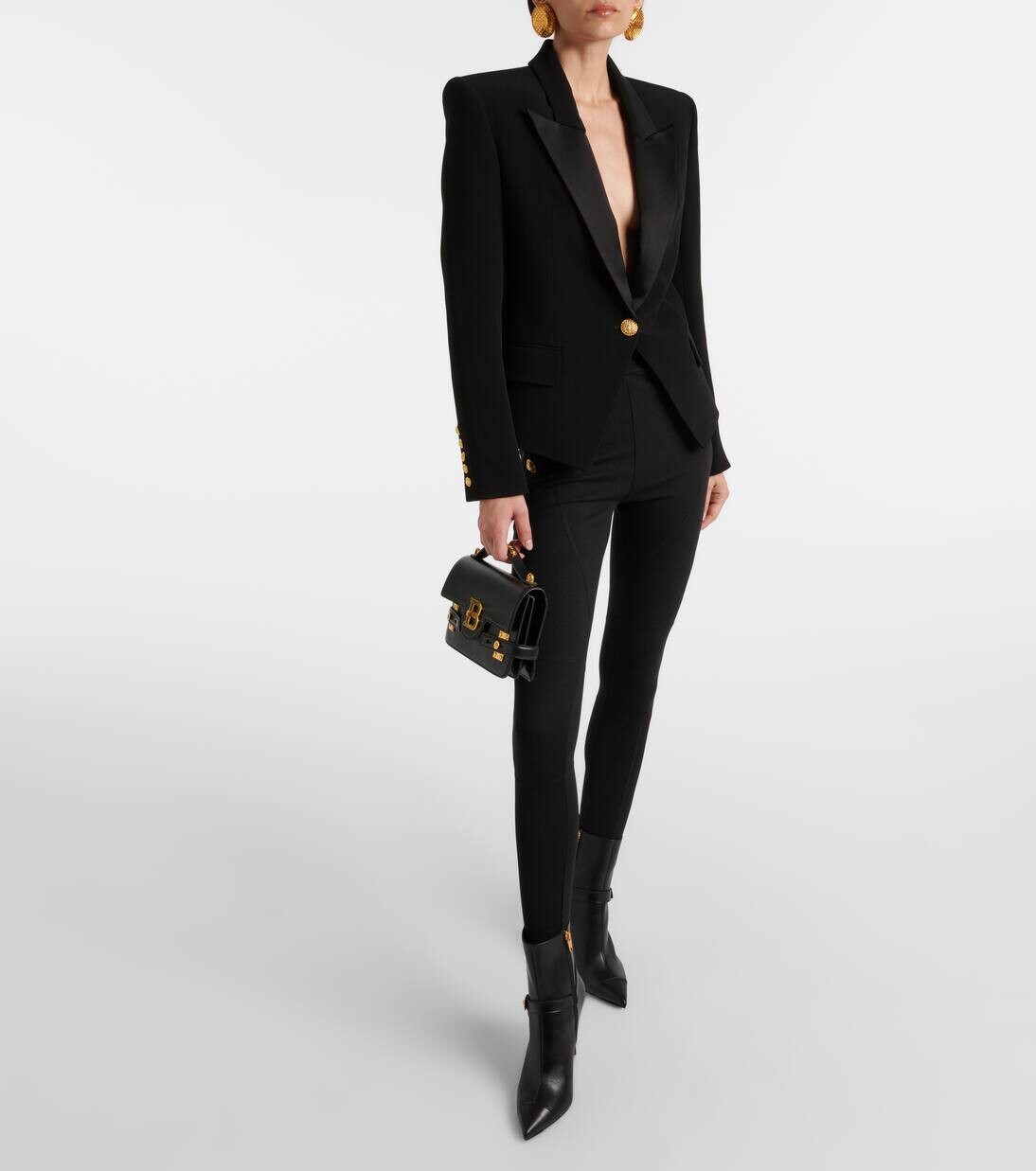 Однобортный креповый блейзер Balmain, черный