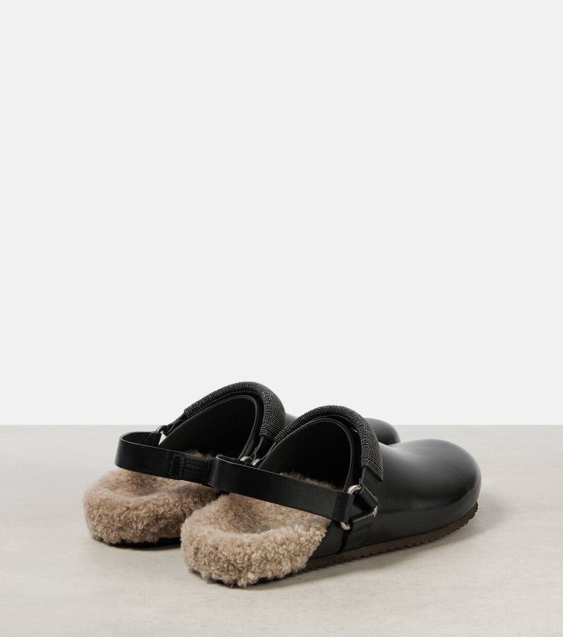 Сабо из кожи с подкладкой из овчины Monili Brunello Cucinelli, черный
