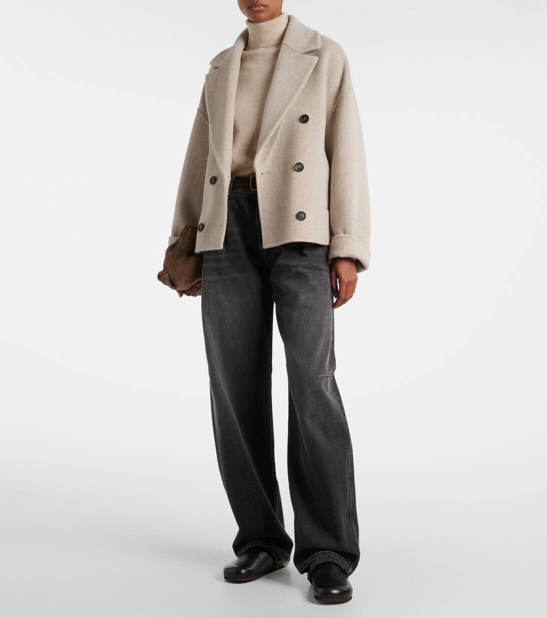 Сабо из кожи с подкладкой из овчины Monili Brunello Cucinelli, черный 160 324₽