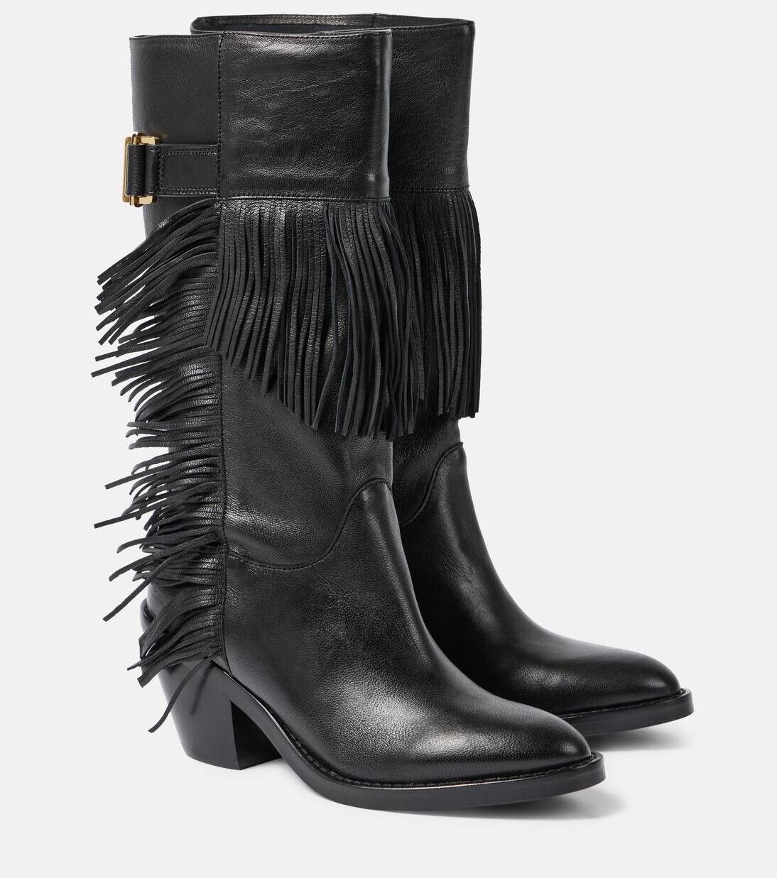 Сапоги до колен из кожи Santiag See By Chloé, черный