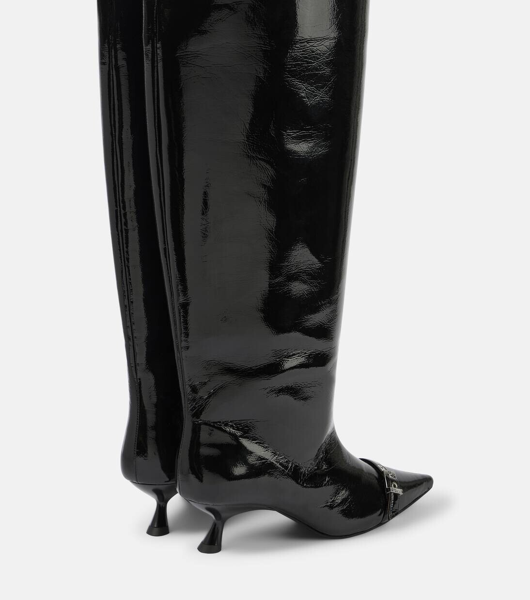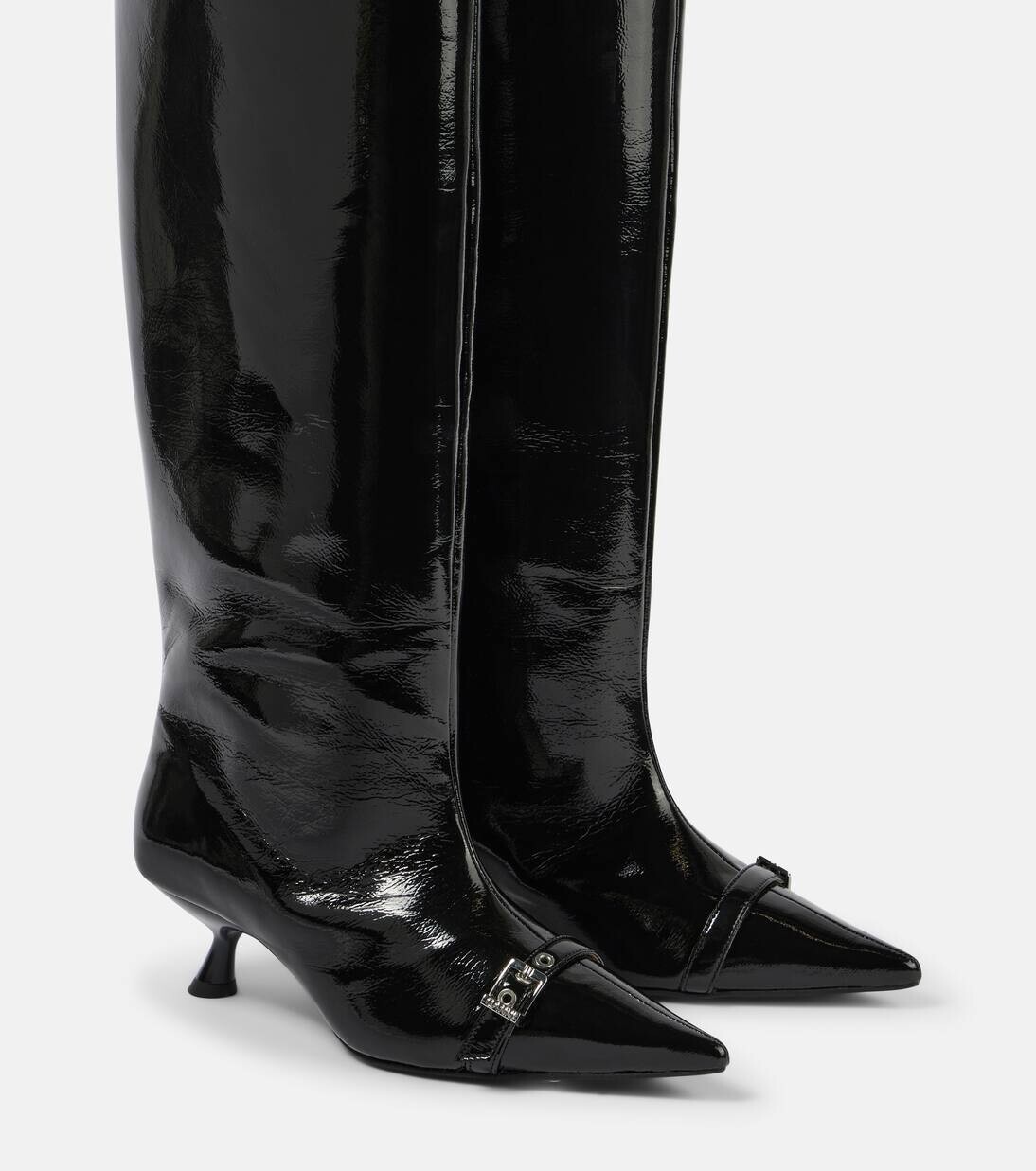 Сапоги до колена из искусственной кожи с люверсами Ganni, черный