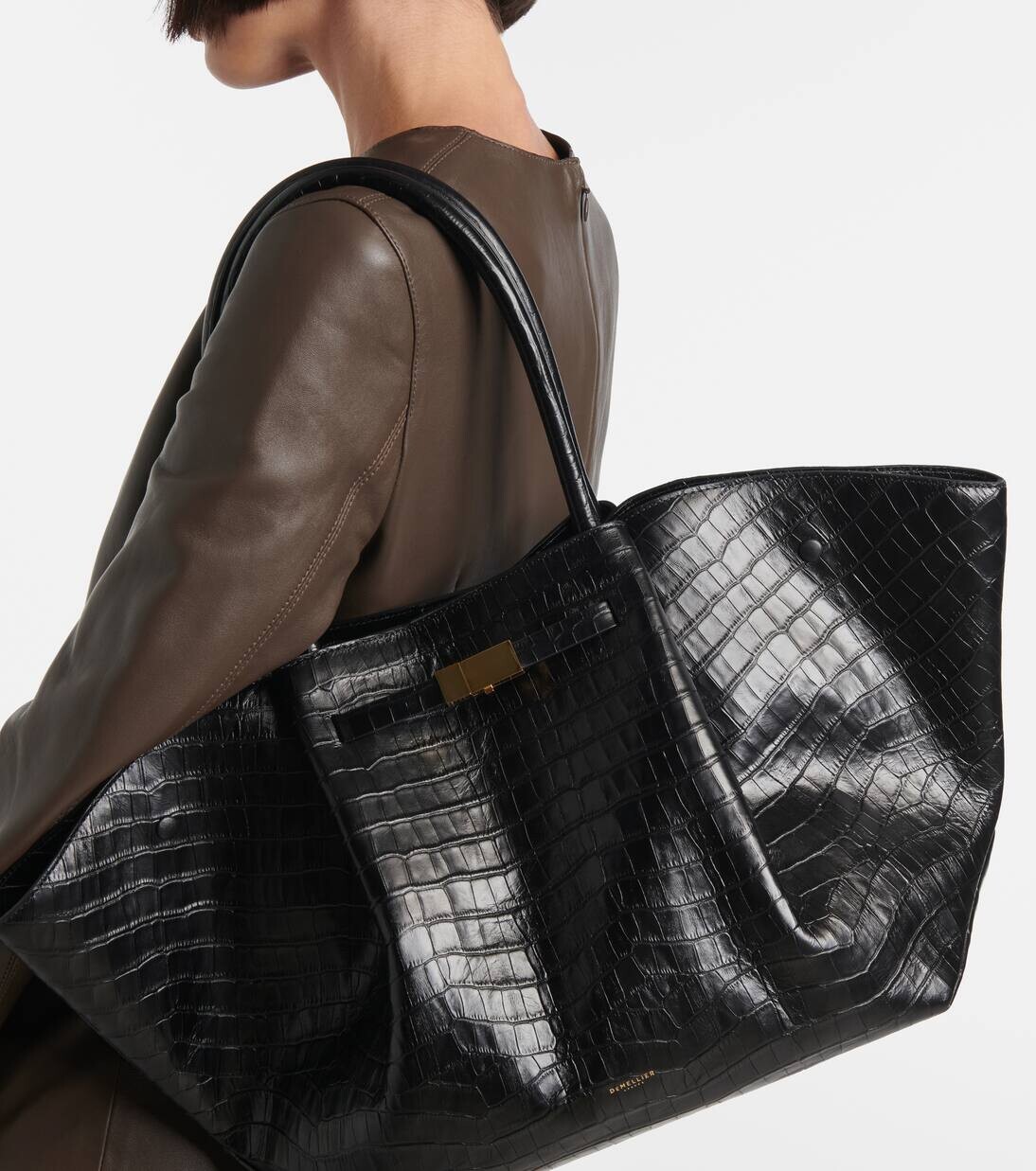 Сумка-тоут из кожи с эффектом крокодиловой кожи Demellier, черный 75 198₽