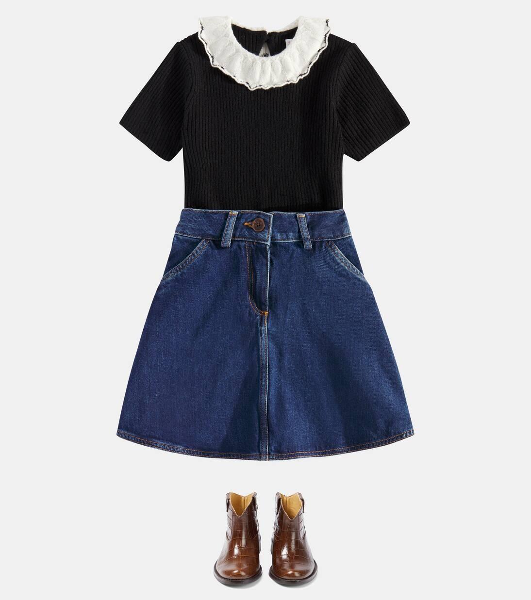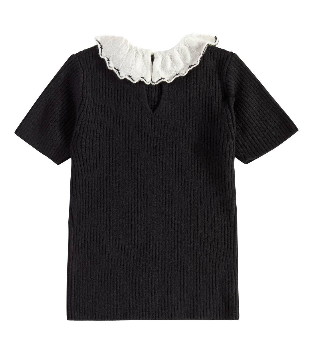 Шерстяной свитер Génie с оборками Bonpoint, черный
