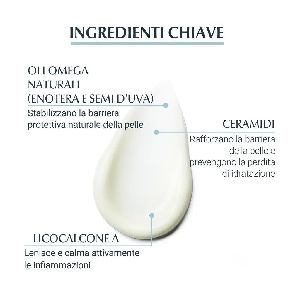 Показано для атопической кожи лица. Стеарат, стеарат ПЭГ-40, экстракт корня солодки инфлатной, церамид NP, токоферол, аскорбилпальмитат, лимонная кислота, цитрат натрия, BHT, 1-2-гександиол, дециленгликоль, феноксиэтанол