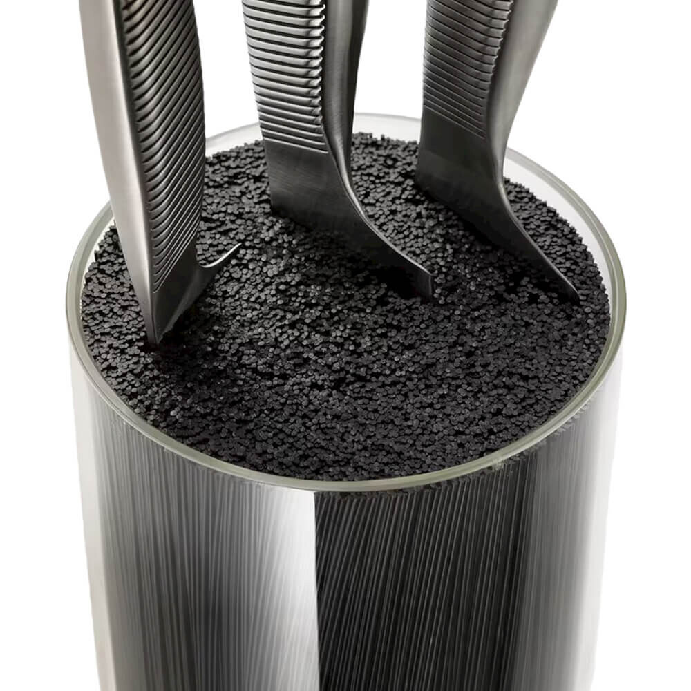 Практичное решение для хранения ножей. В подставке нет прорезей, ножи вставляются в плотный пластиковый наполнитель. Он защищает края лезвия и продлевает срок службы каждого ножа.