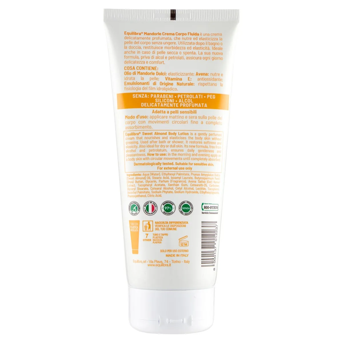 Equilibra Almond Fluid Cream – это крем с нежным ароматом, который питает и придает эластичность коже тела, не оставляя жирного блеска. При использовании после ванны или душа восстанавливает мягкость и эластичность. Также идеально подходит для сухой или тусклой кожи. Его новая формула, не содержащая спирта и вазелина, обеспечивает деликатность и комфорт каждый день.