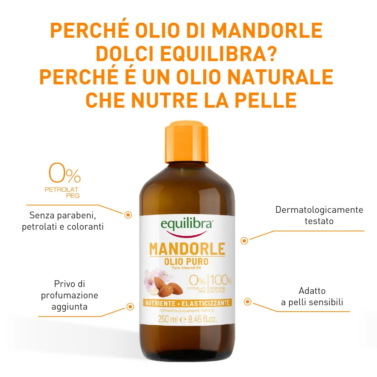 Миндальное масло Equilibra — 100% растительное масло натурального происхождения, полученное методом холодного отжима, идеальное для питания, защиты и сохранения мягкости кожи тела без жирности. Его эластичные свойства помогают предотвратить появление растяжек. Также подходит во время беременности.