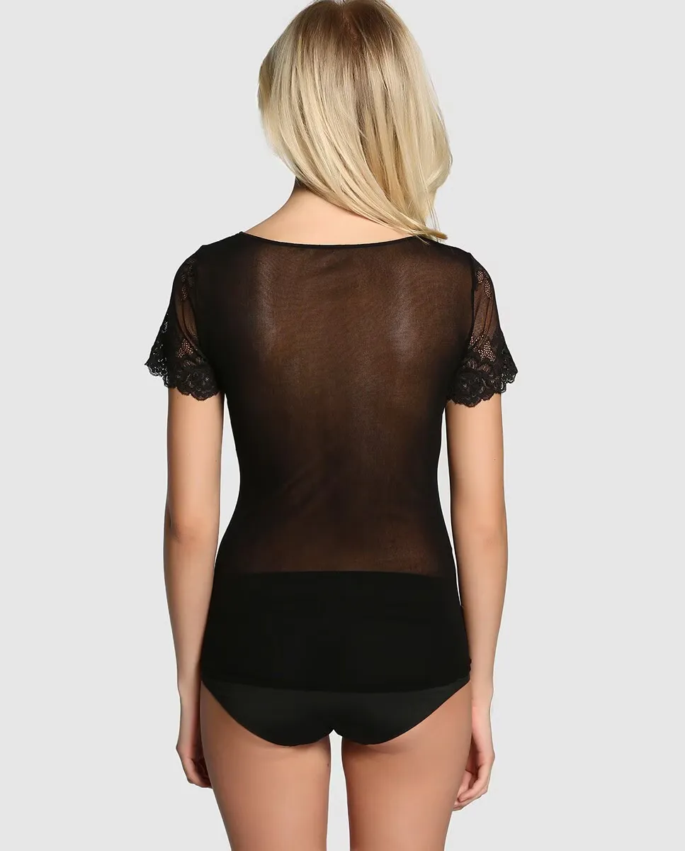 Женская майка Janira с тюлем и кружевом, черный