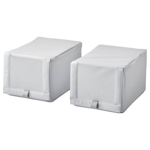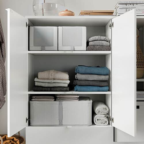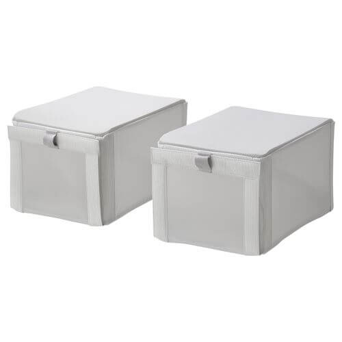 Коллекция ХЕММАФИКСАРЕ — прочные штабелируемые текстильные коробки разных размеров, которое помогут вам эффективно использовать каждый сантиметр пространства гардероба, чтобы организовать хранение одежды, обуви и гаджетов.