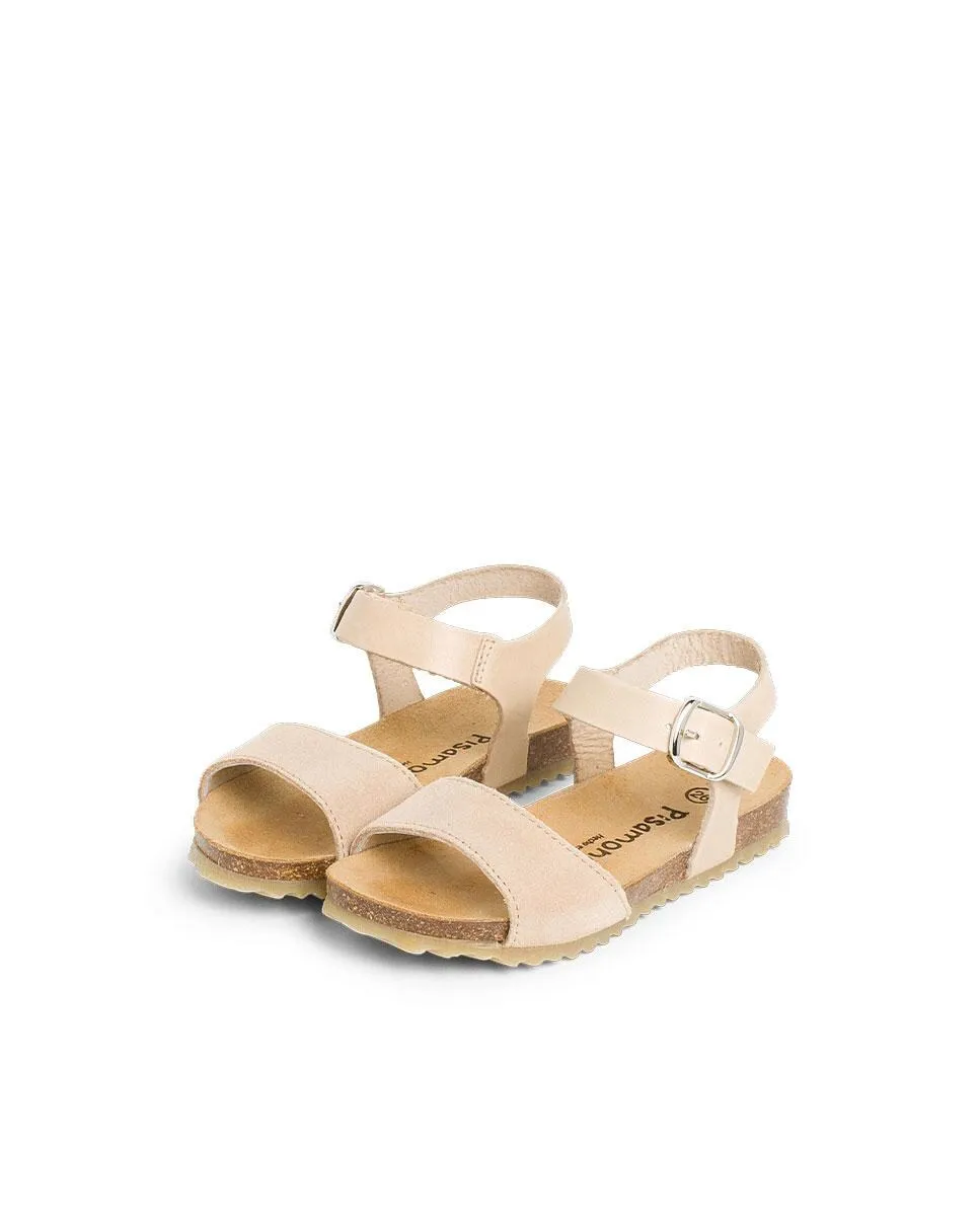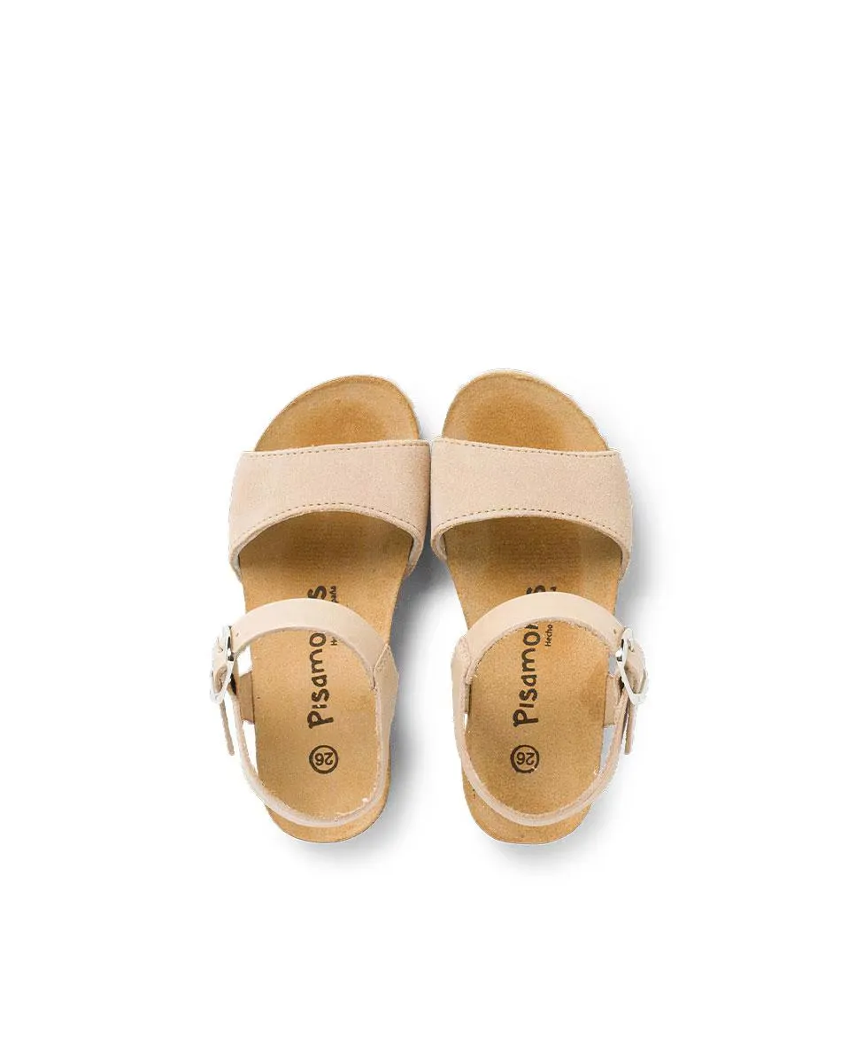 Открытые босоножки для девочек из кожи наппа и замши Pisamonas, бежевый