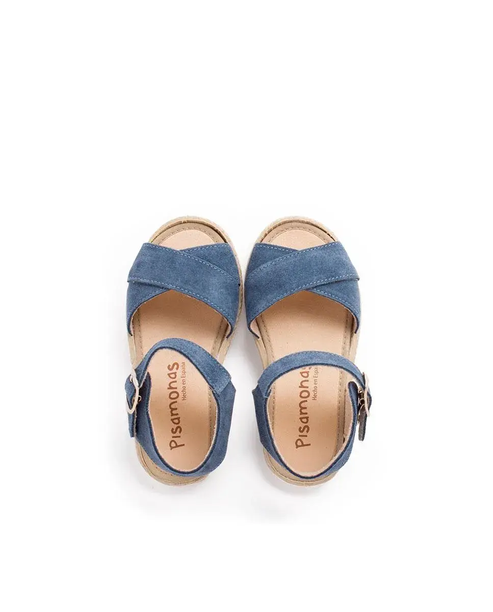 Открытые замшевые кожаные босоножки для девочки Pisamonas, синий