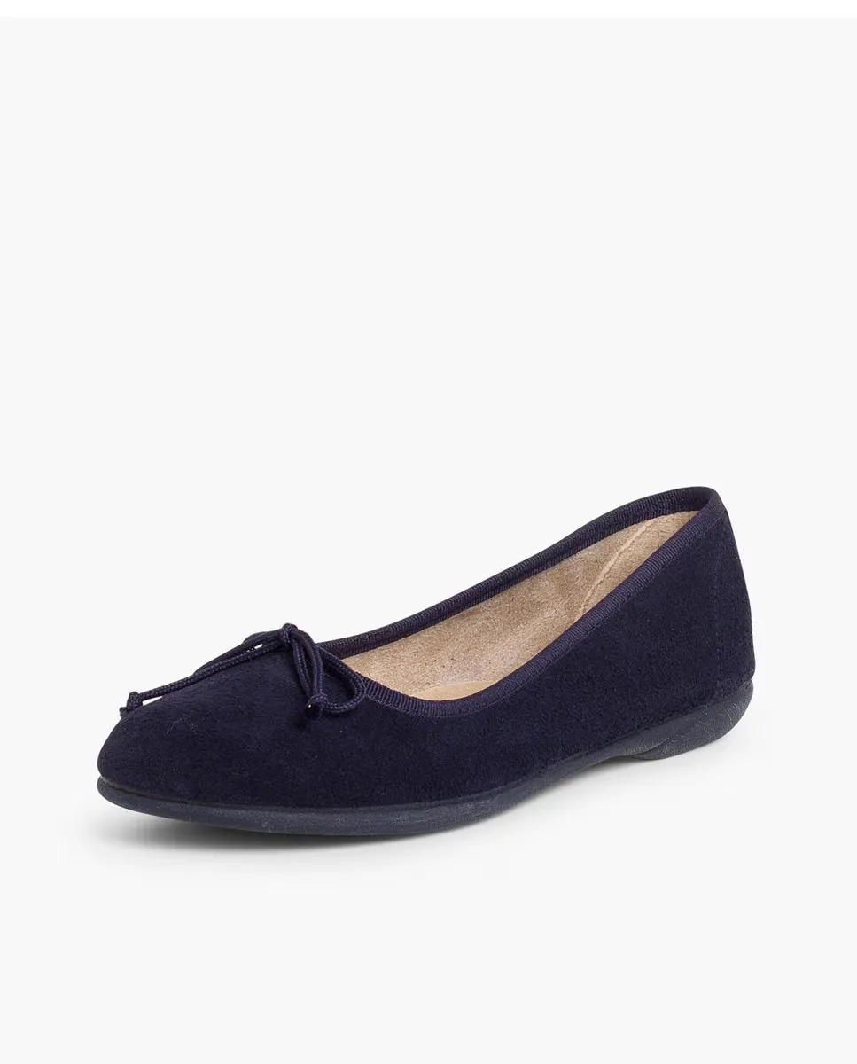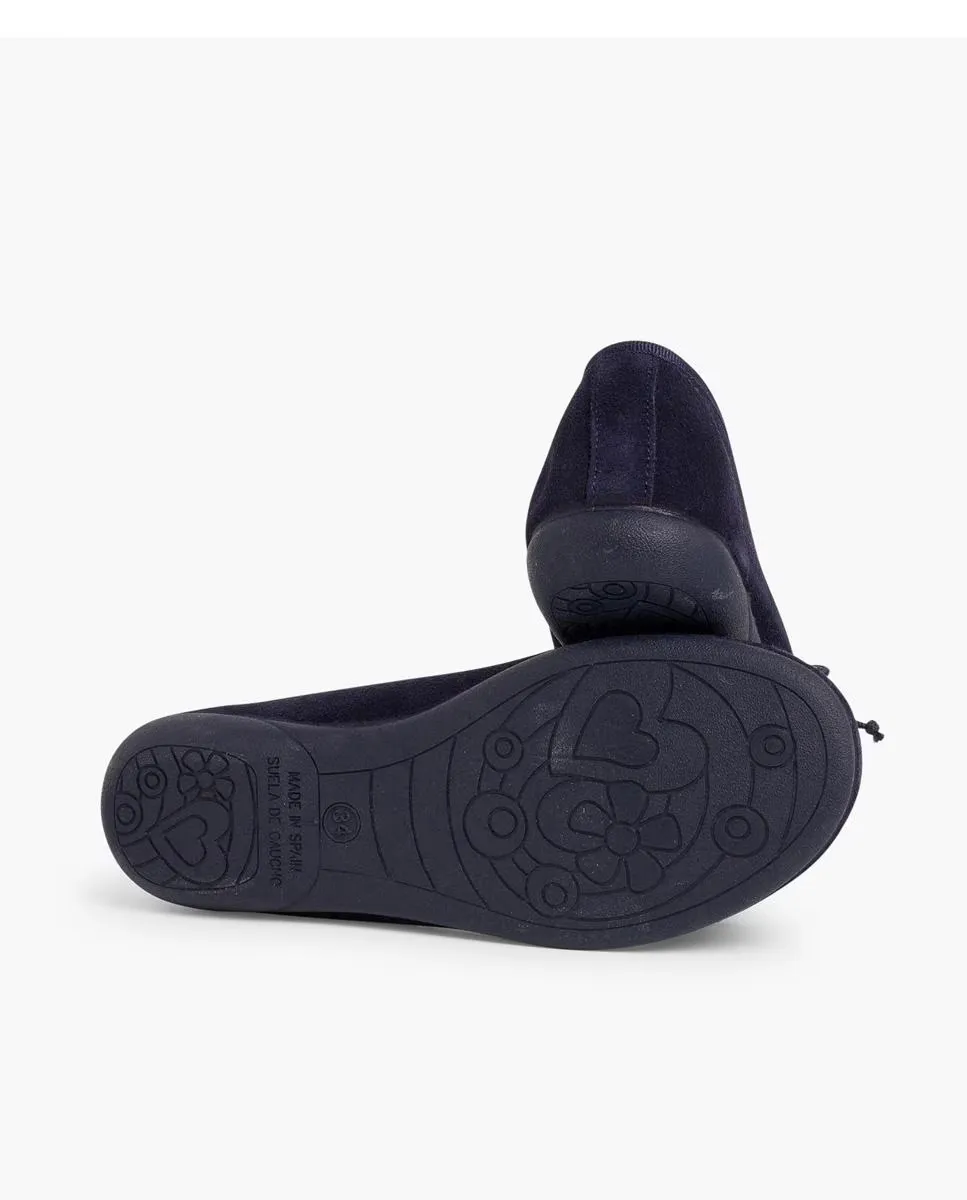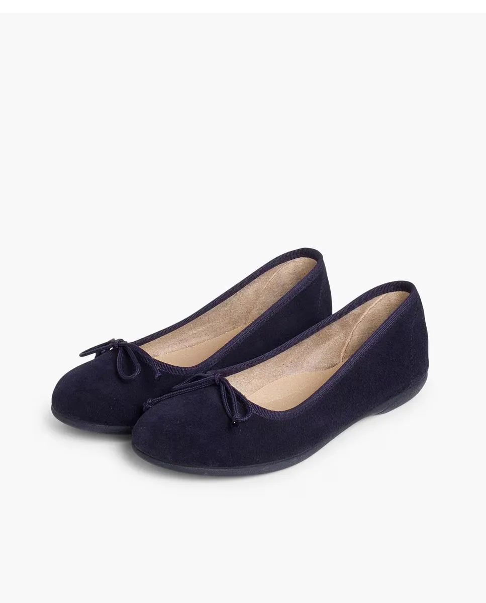 Кожаные балетки для девочки с тонким бантиком Pisamonas, темно-синий