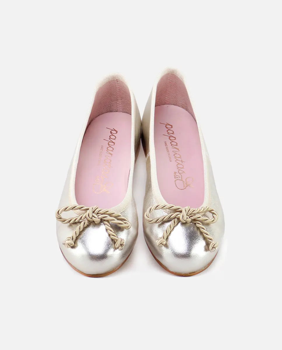 Кожаные балетки для девочки с бантиком на шнурке Eli 1957, золотой