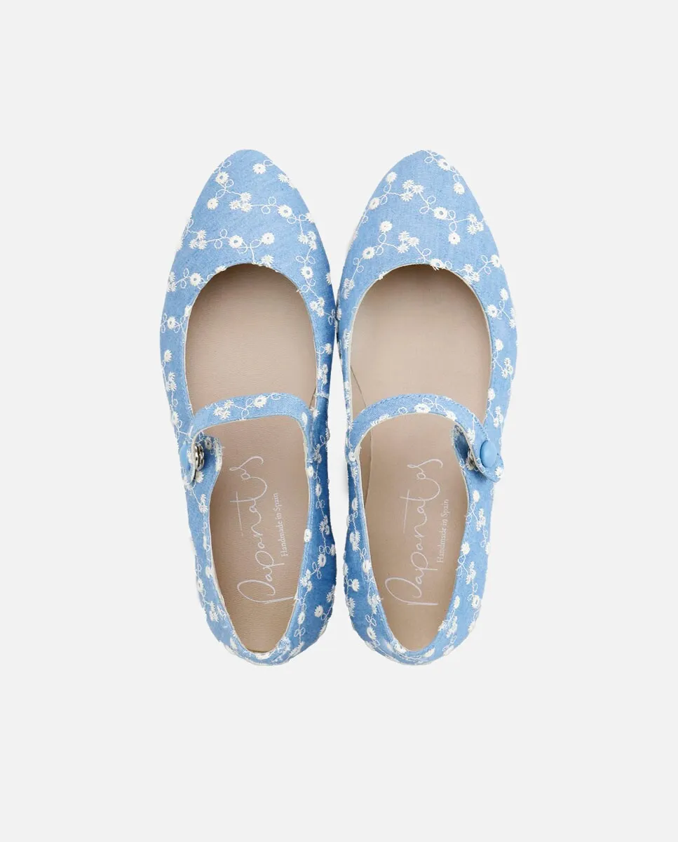 Девичья Мэри Джейн из джинсовой ткани с вышитыми цветами Eli 1957, синий