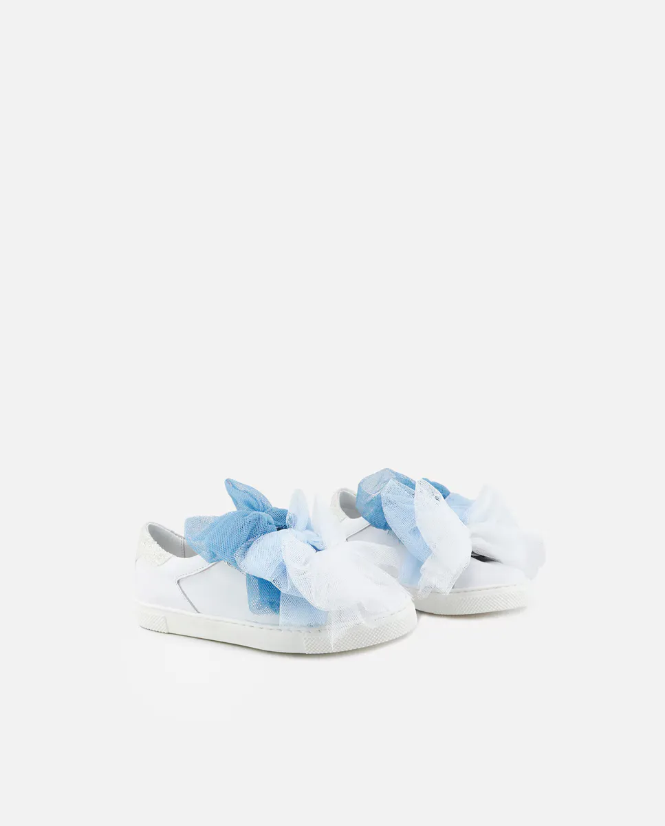 Кожаные кроссовки для девочки с бантиками из тюля Eli 1957, белый