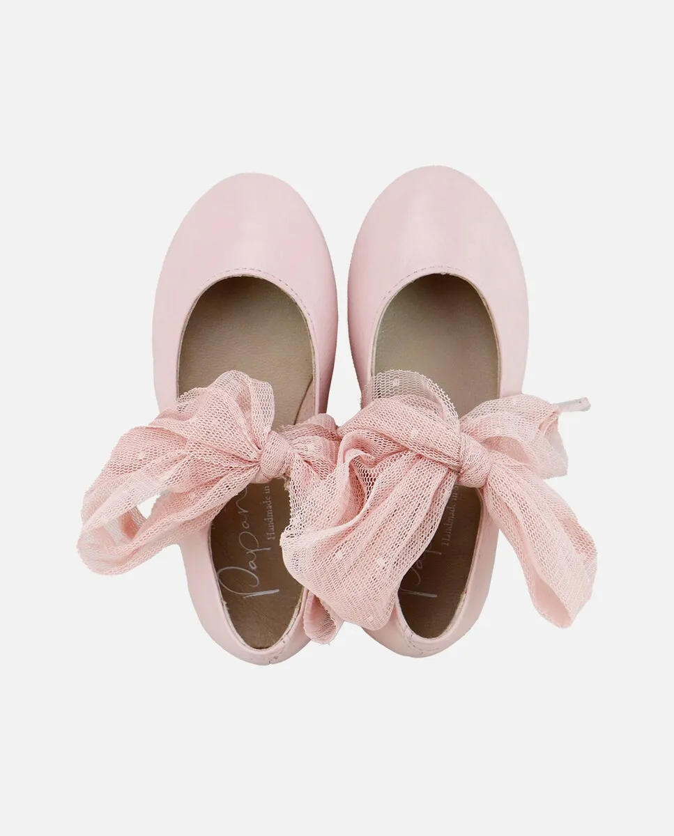 Кожаные балетки для девочки с лентами плюмети Eli 1957, розовый