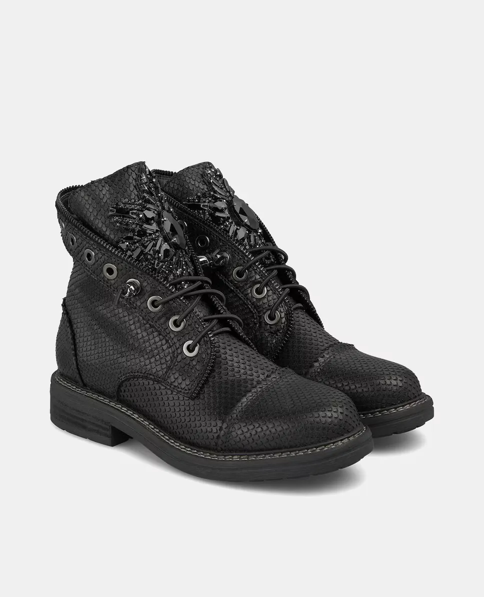 Женские кожаные ботильоны на шнуровке Alma en Pena, черный
