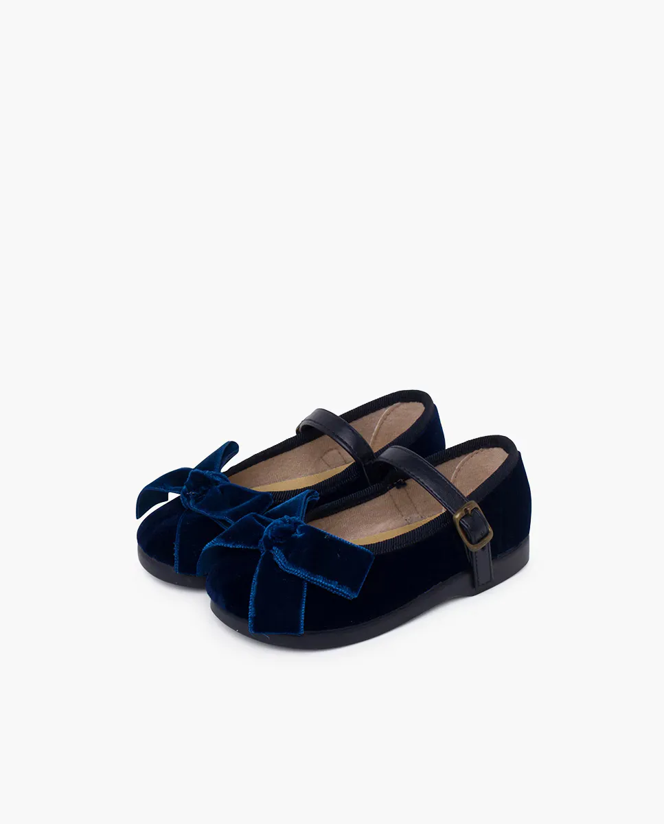 Мэри Джейн для девочки с кожаным ремешком и бархатным бантом Pisamonas, темно-синий 6 945₽