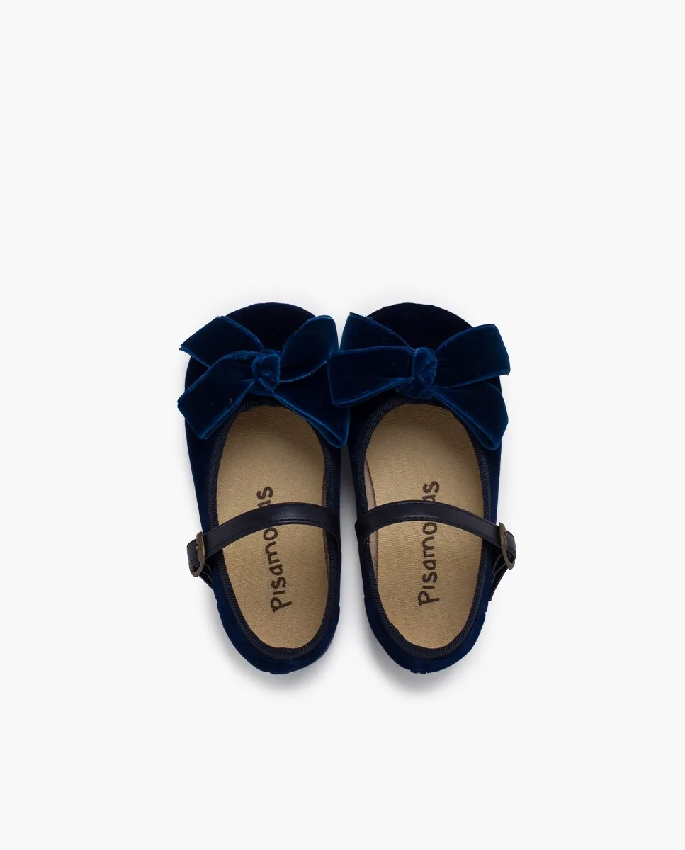 Мэри Джейн для девочки с кожаным ремешком и бархатным бантом Pisamonas, темно-синий